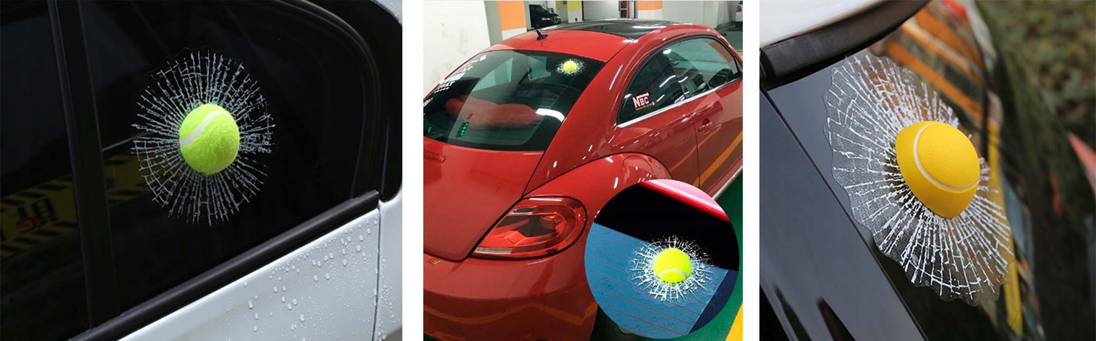 - Naklejka Piłka rozbita szyba – 1 szt. Rozm: 12 cm x 12 cm