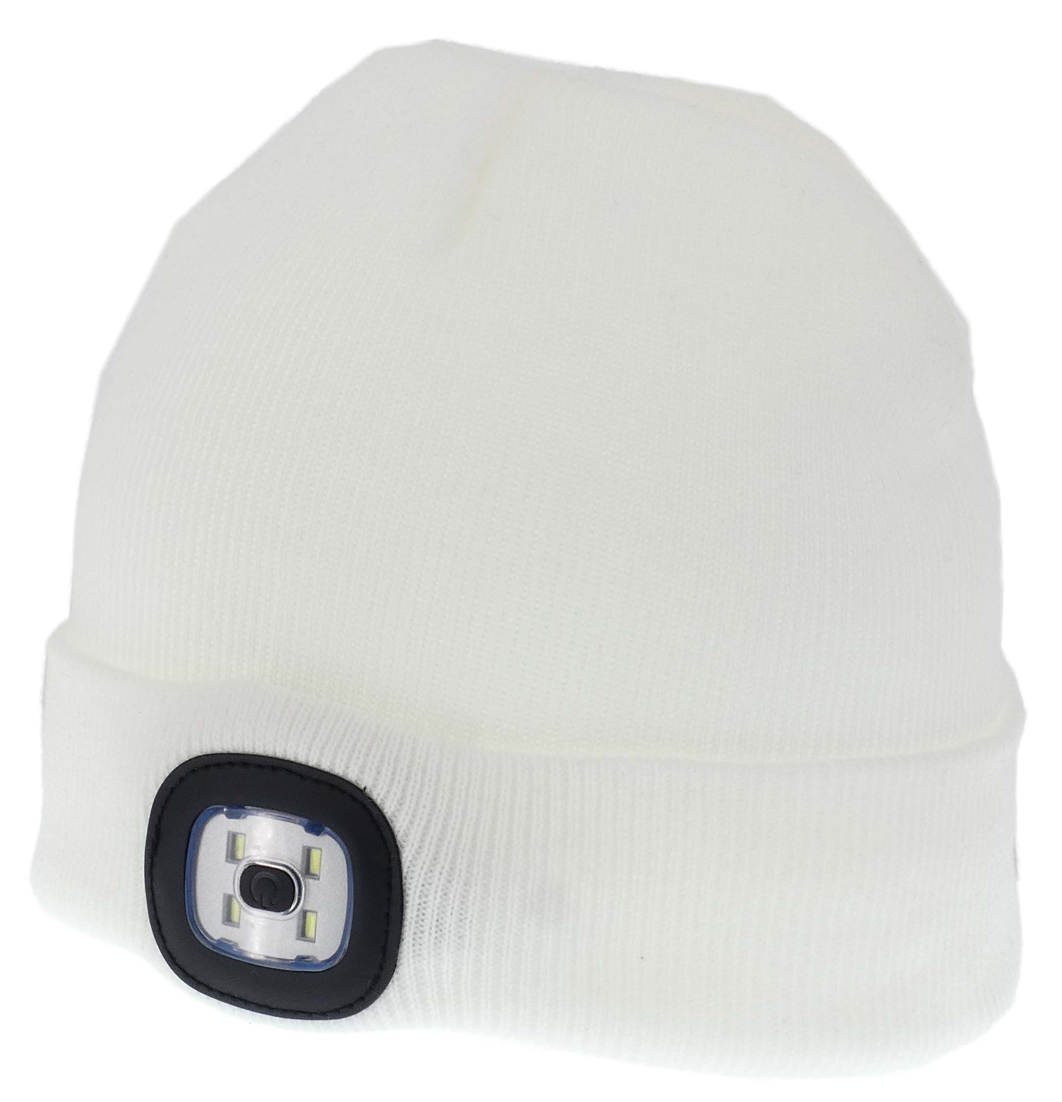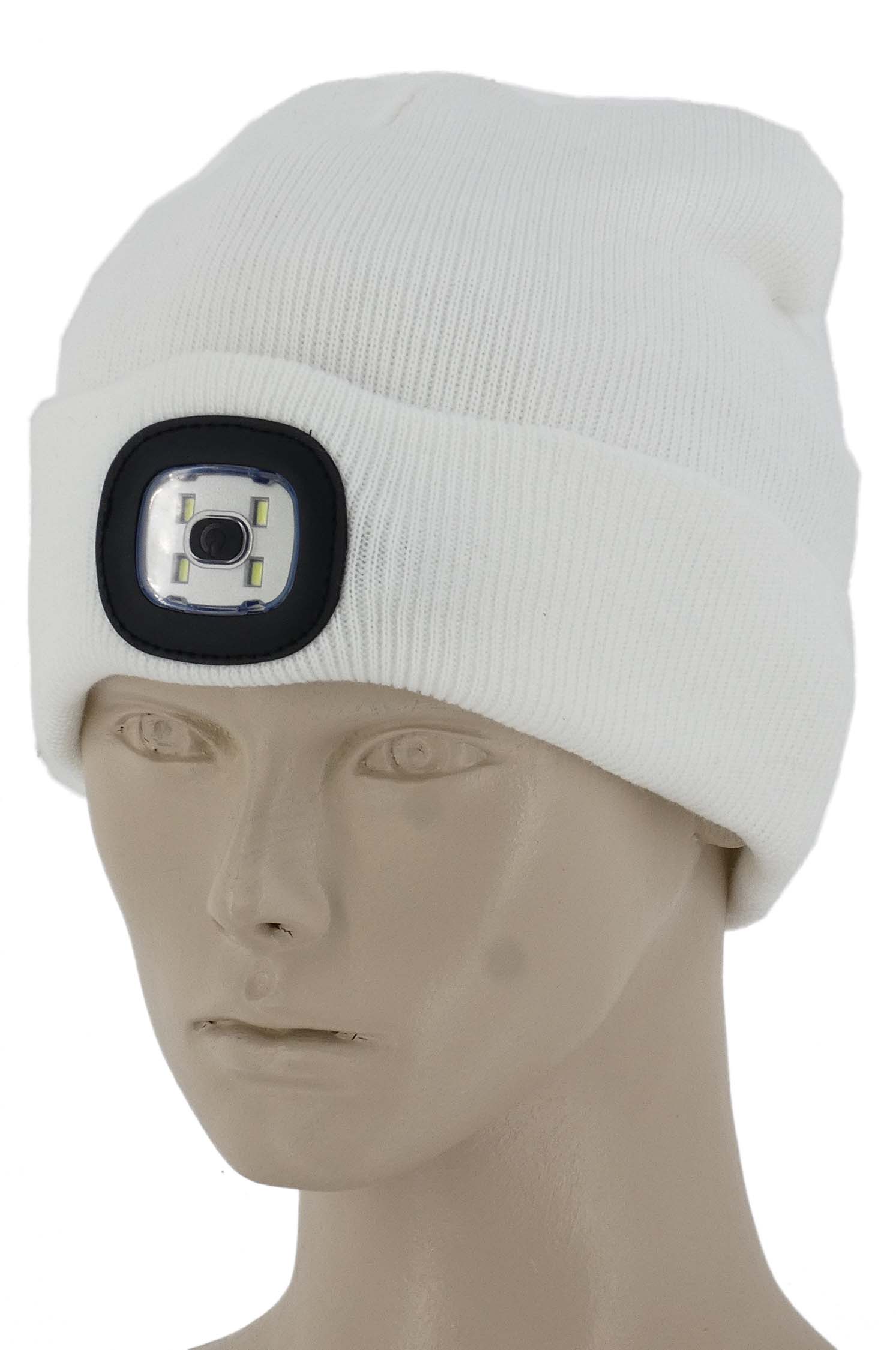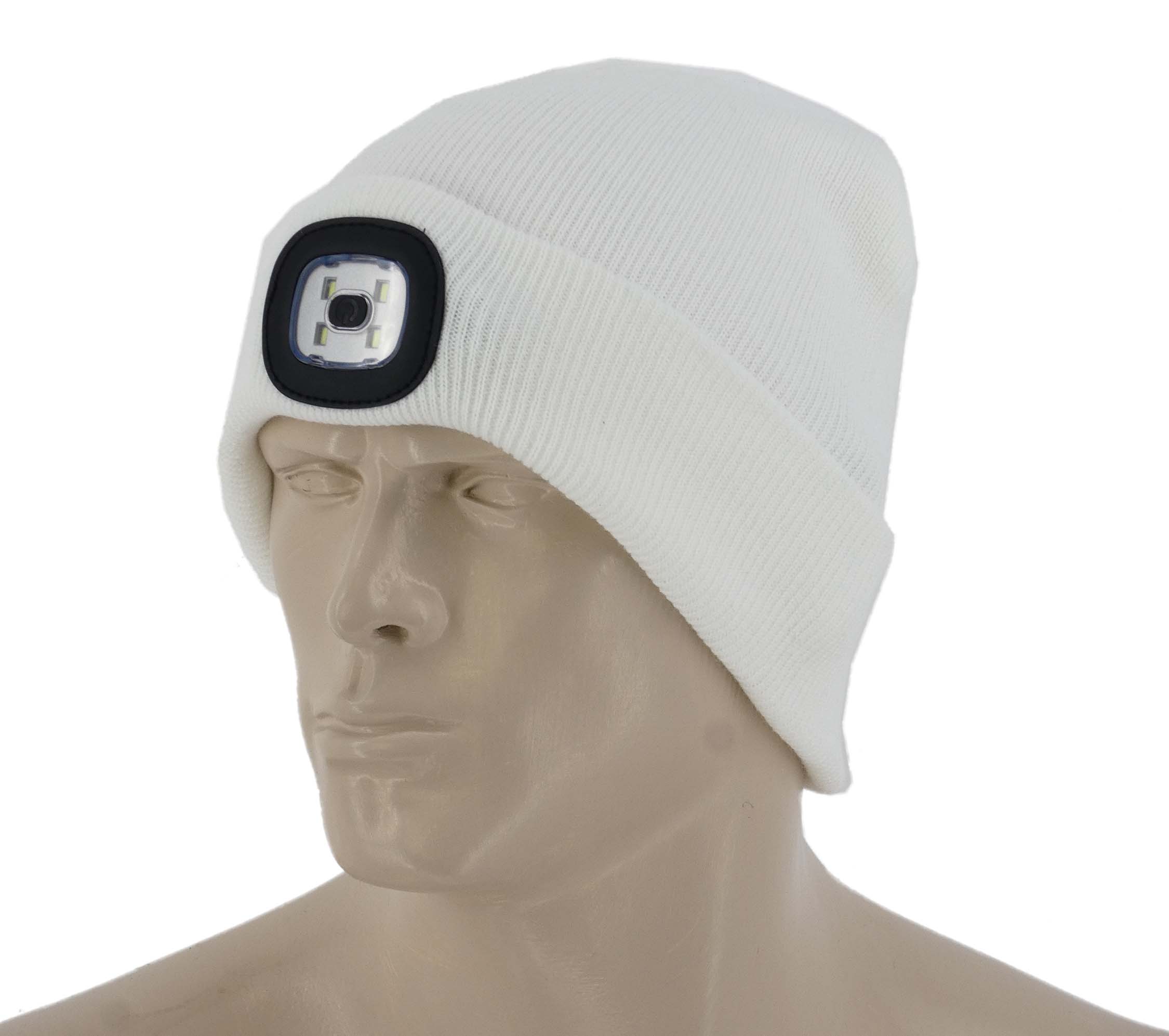 CIEPŁA CZAPKA CZOŁÓWKA Z LATARKĄ LED ŁADOWANIE USB BIAŁA UNISEX