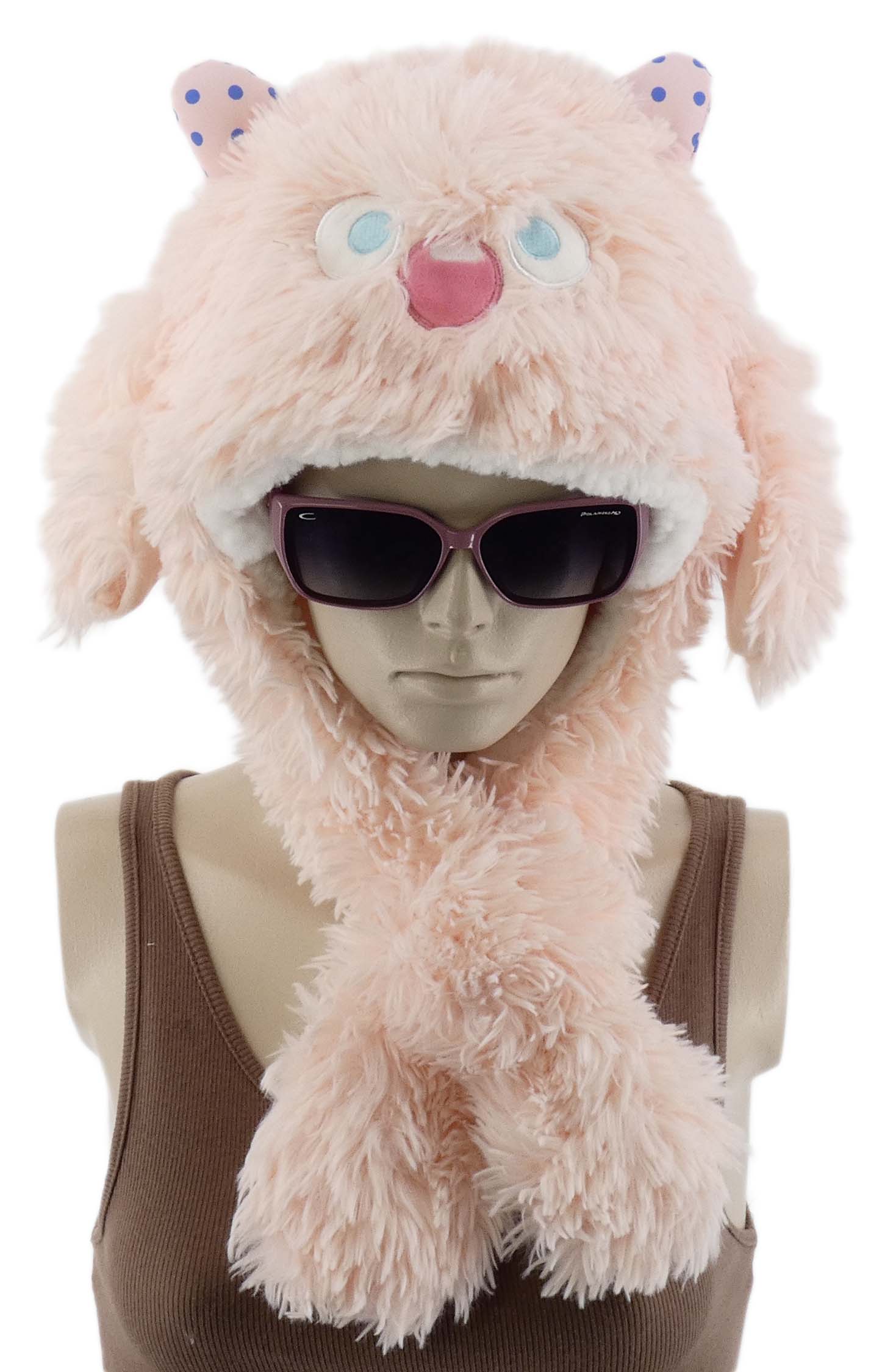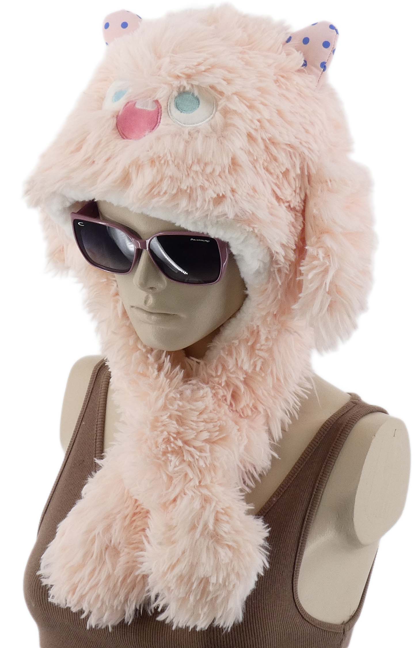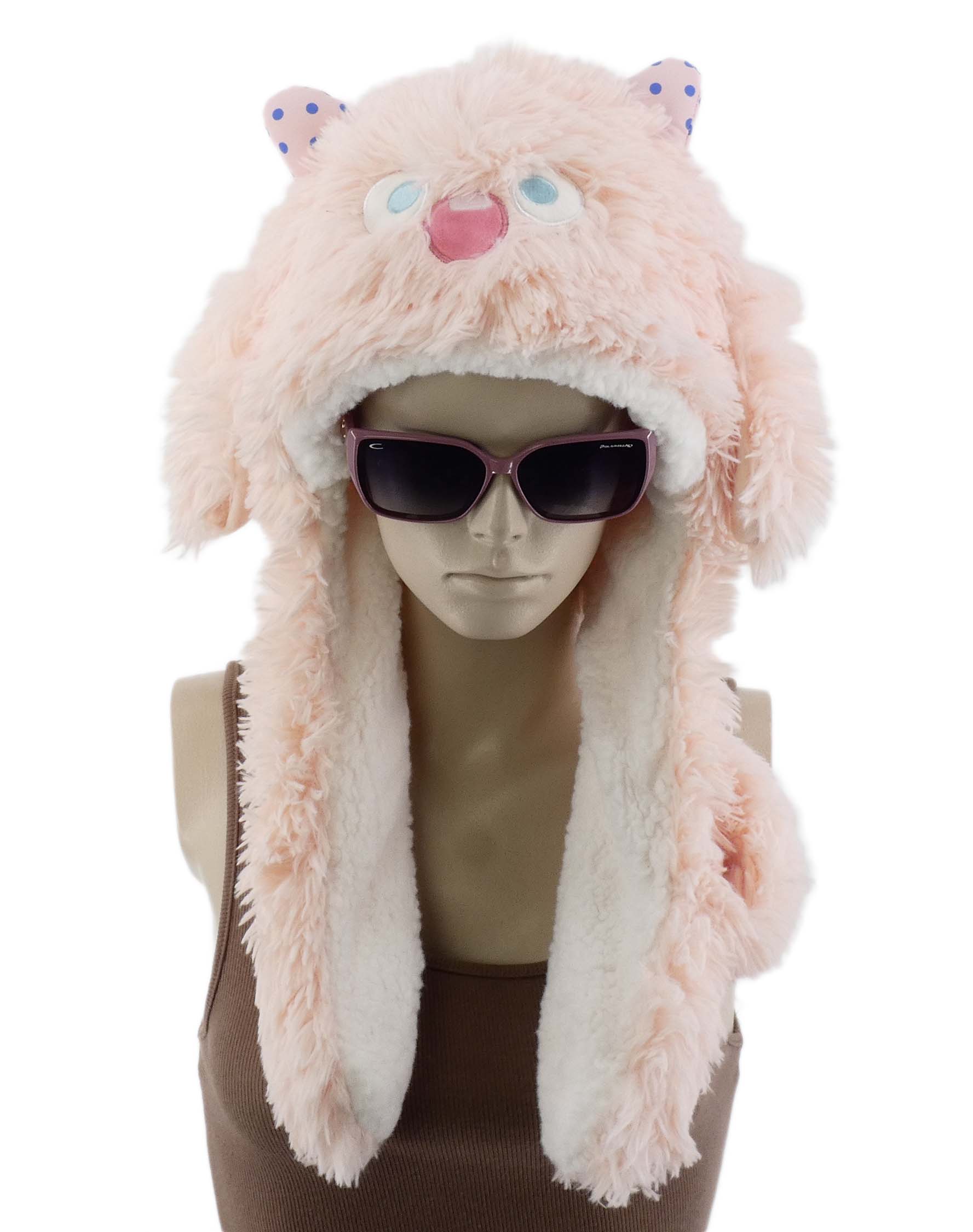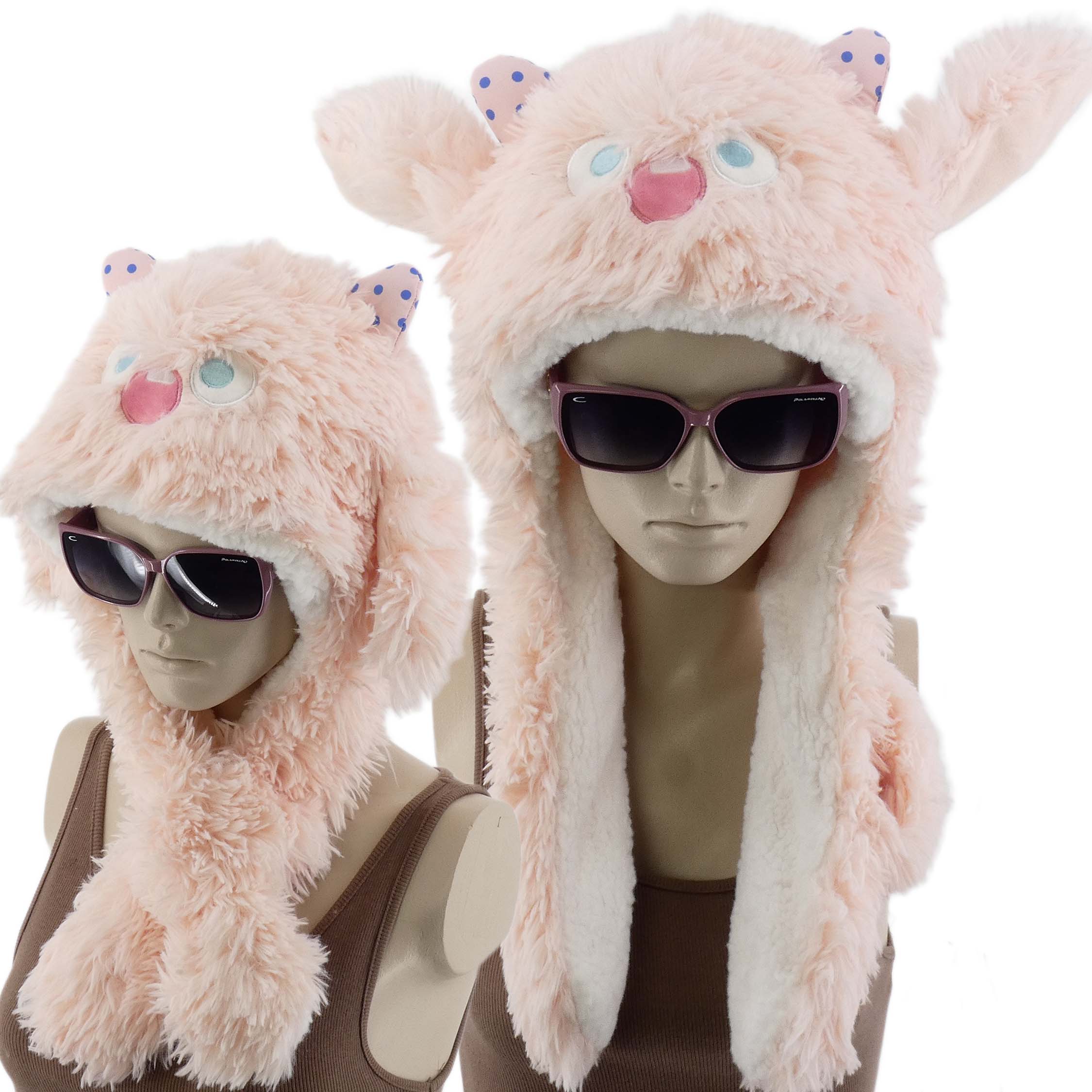 Zabawna czapka idealnie uzupełni każdy codzienny outfit, a także świetnie sprawdzi się w trakcie różnych aktywności. Jest miękka, posiada sztuczne futerko i futrzaną podszewkę dzięki czemu zapewnia komfort termiczny w chłodne dni. Modny atrakcyjny krój z ruchomymi uszkami i pomponami.