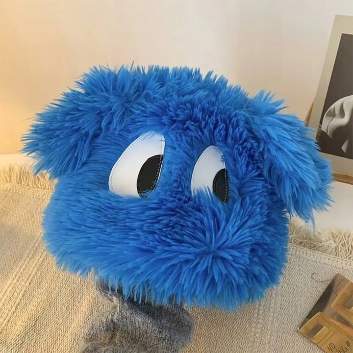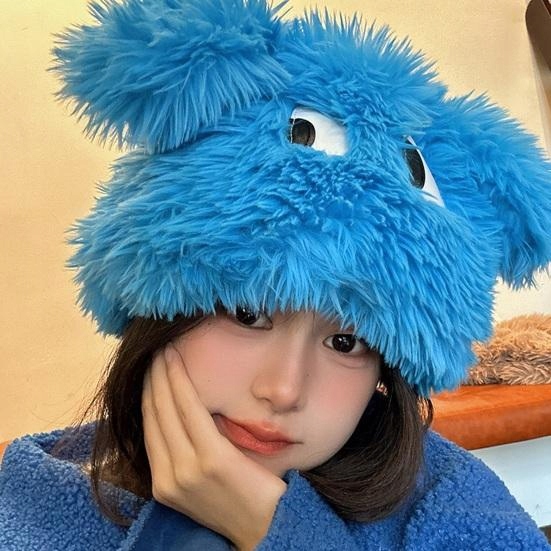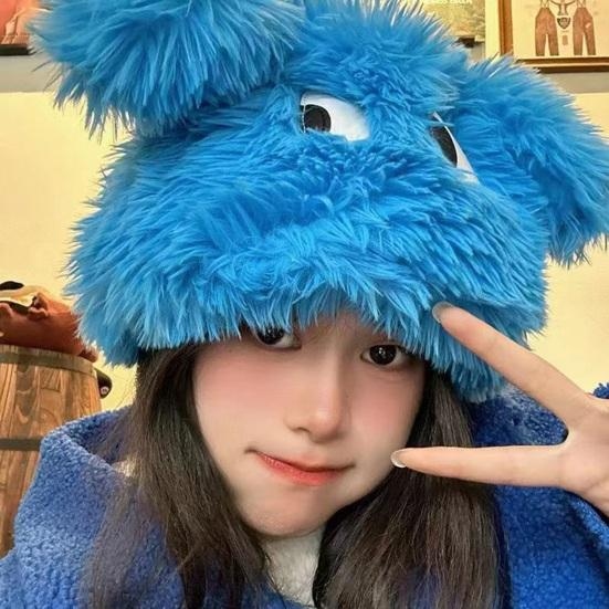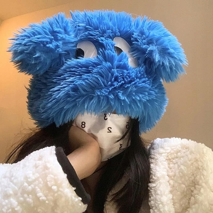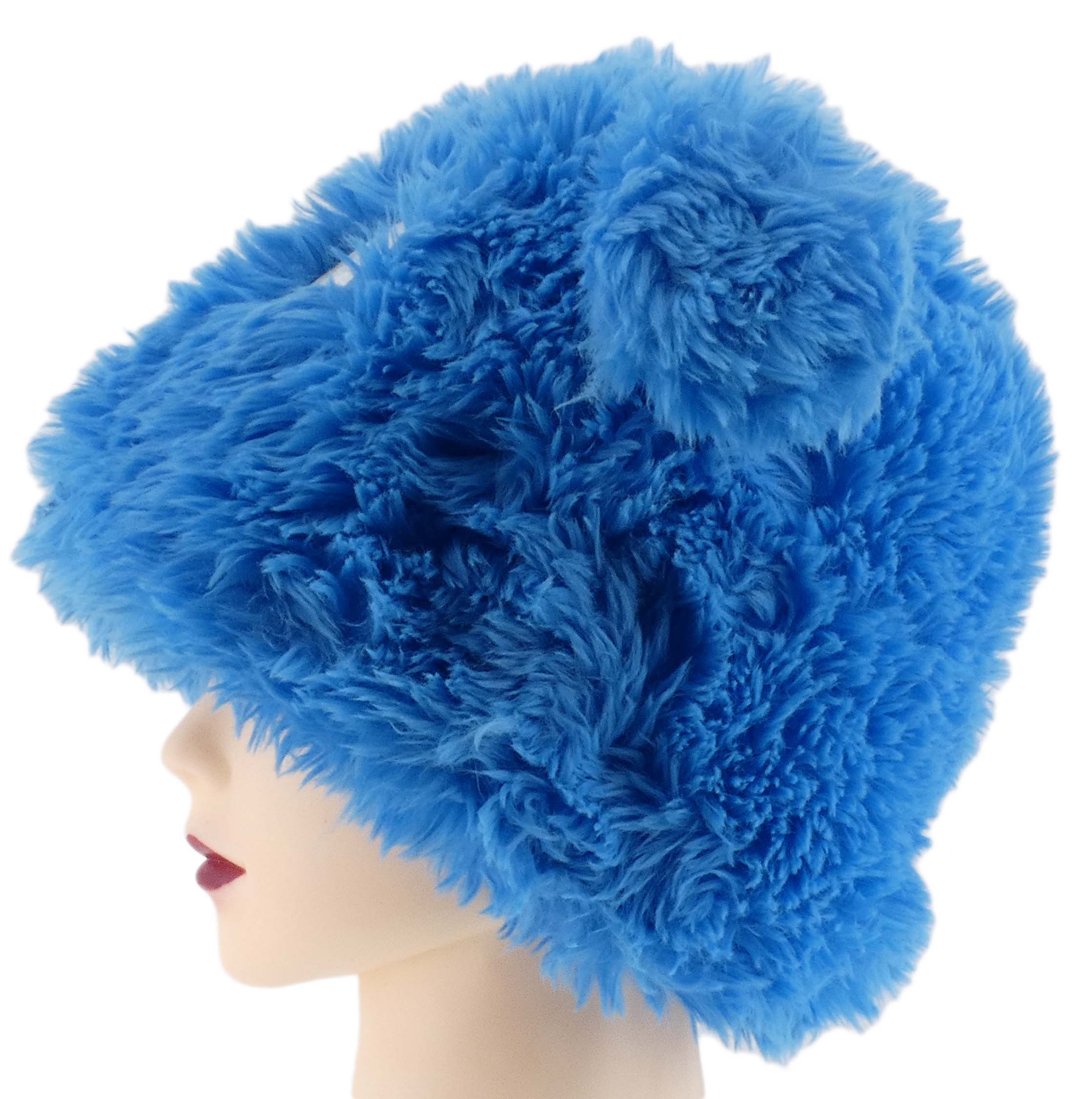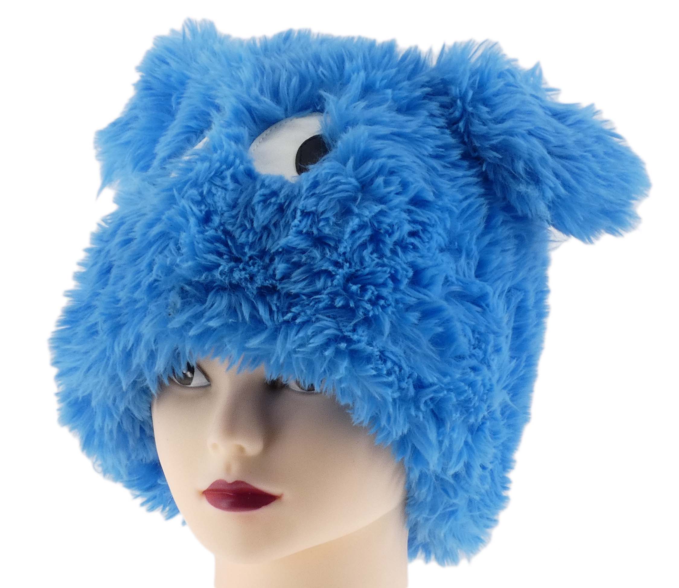 CIEPŁA ZIMOWA CZAPKA KOBIECA Z FUTERKIEM ECO NIEBIESKA MORDKA DUŻE OCZY