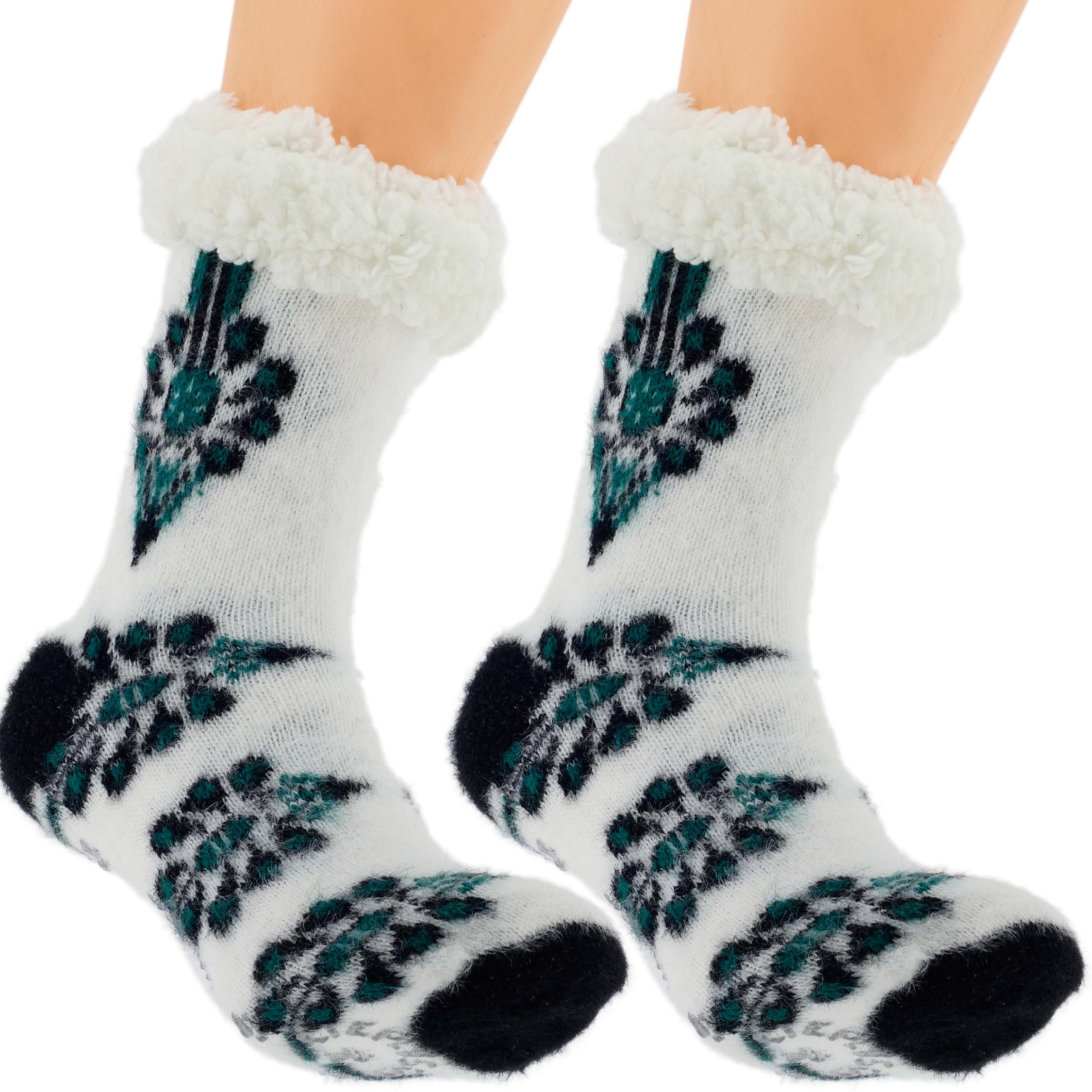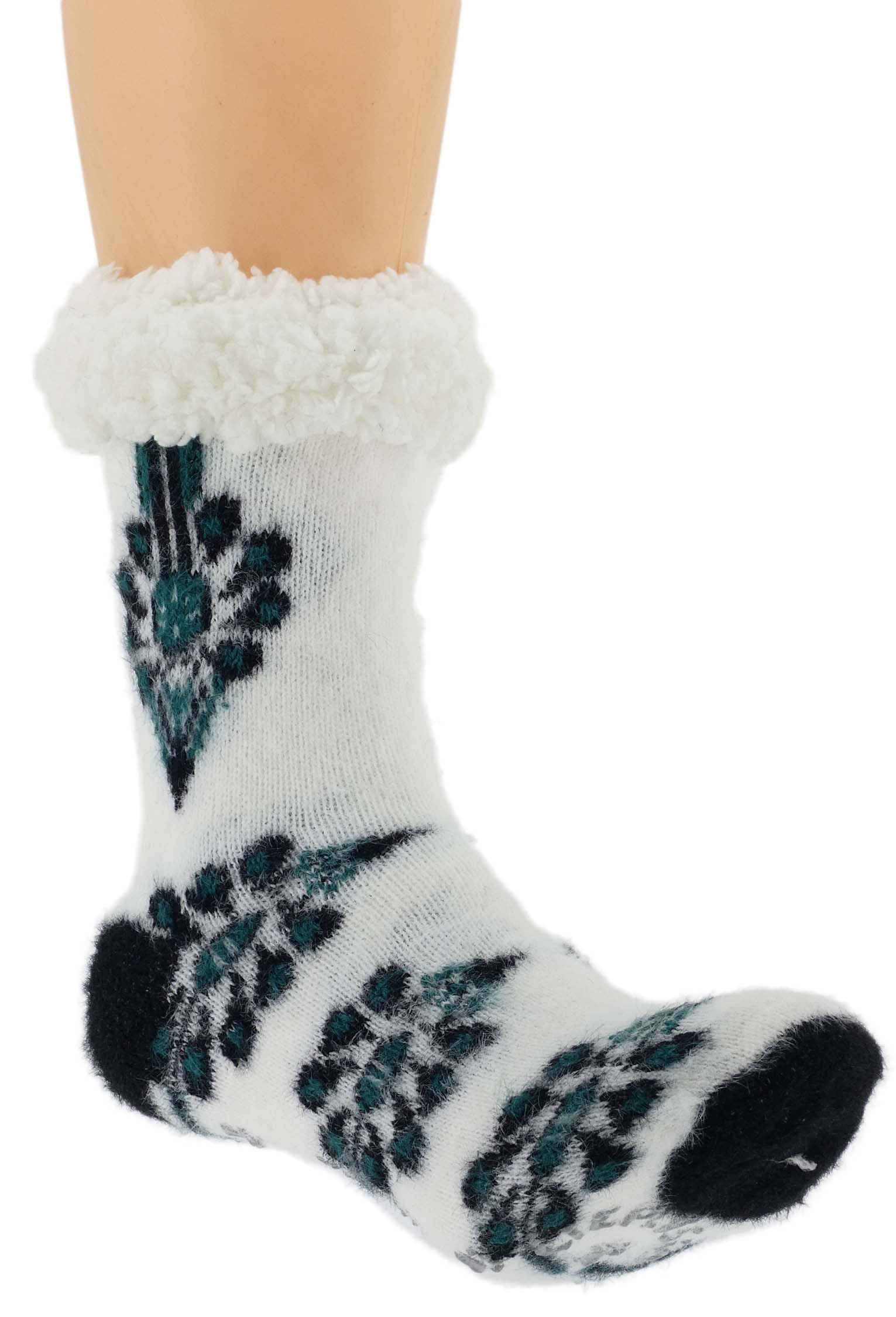 CIEPŁE DAMSKIE SKARPETY ZIMOWE PARZENICA ABS GÓRALSKIE KAPCIE 36-41 ZIELONE