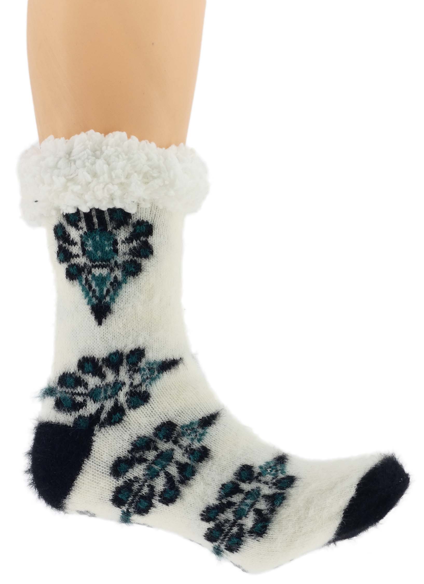 CIEPŁE MĘSKIE SKARPETY KAPCIE PARZENICA ANTYPOŚLIZGOWE MIŚ BIAŁE 41-46