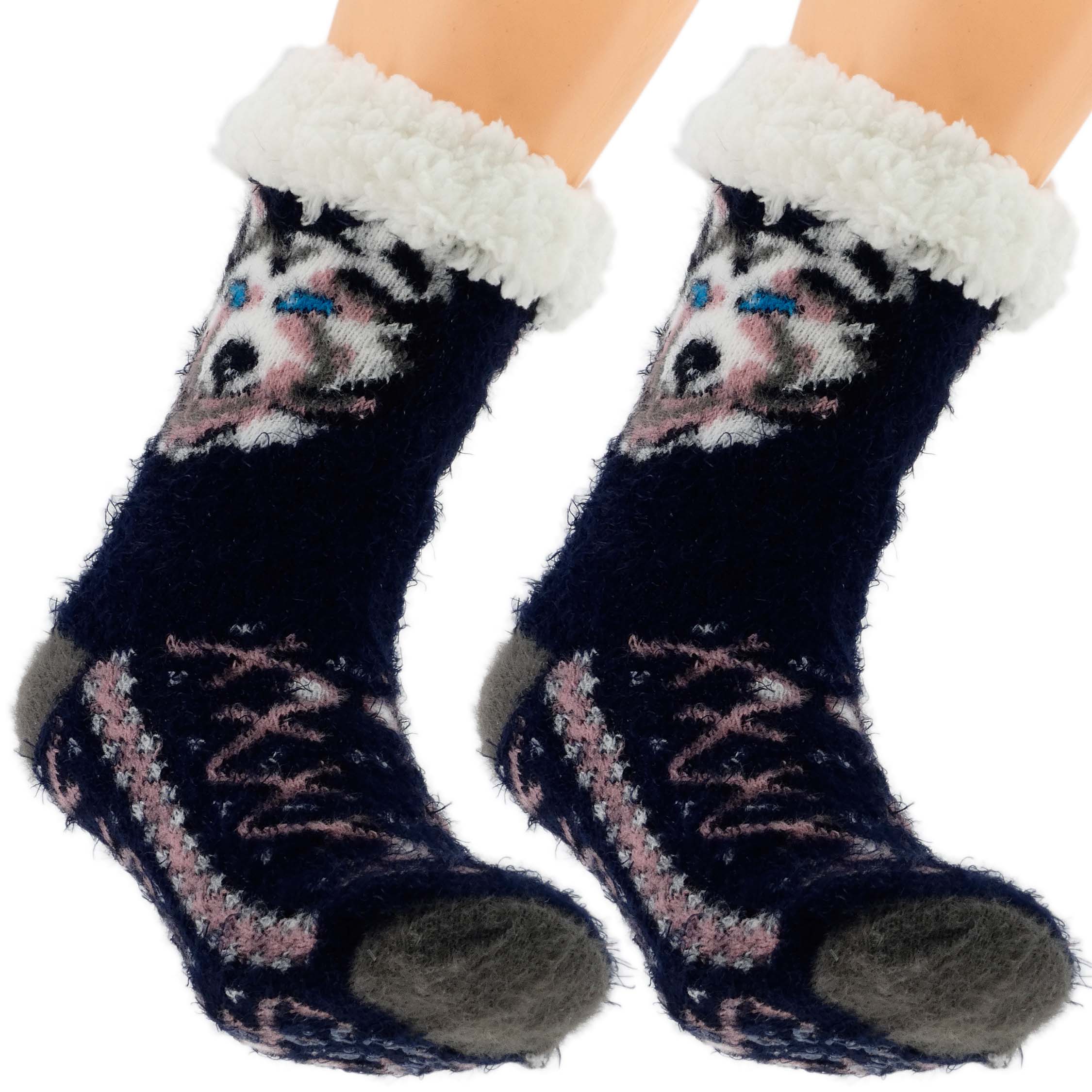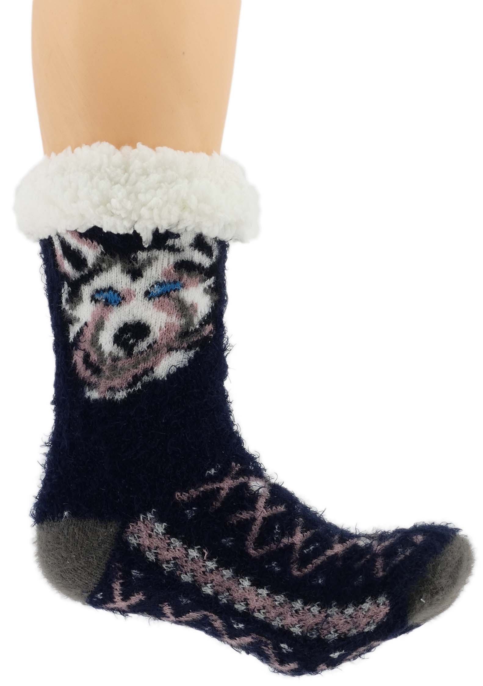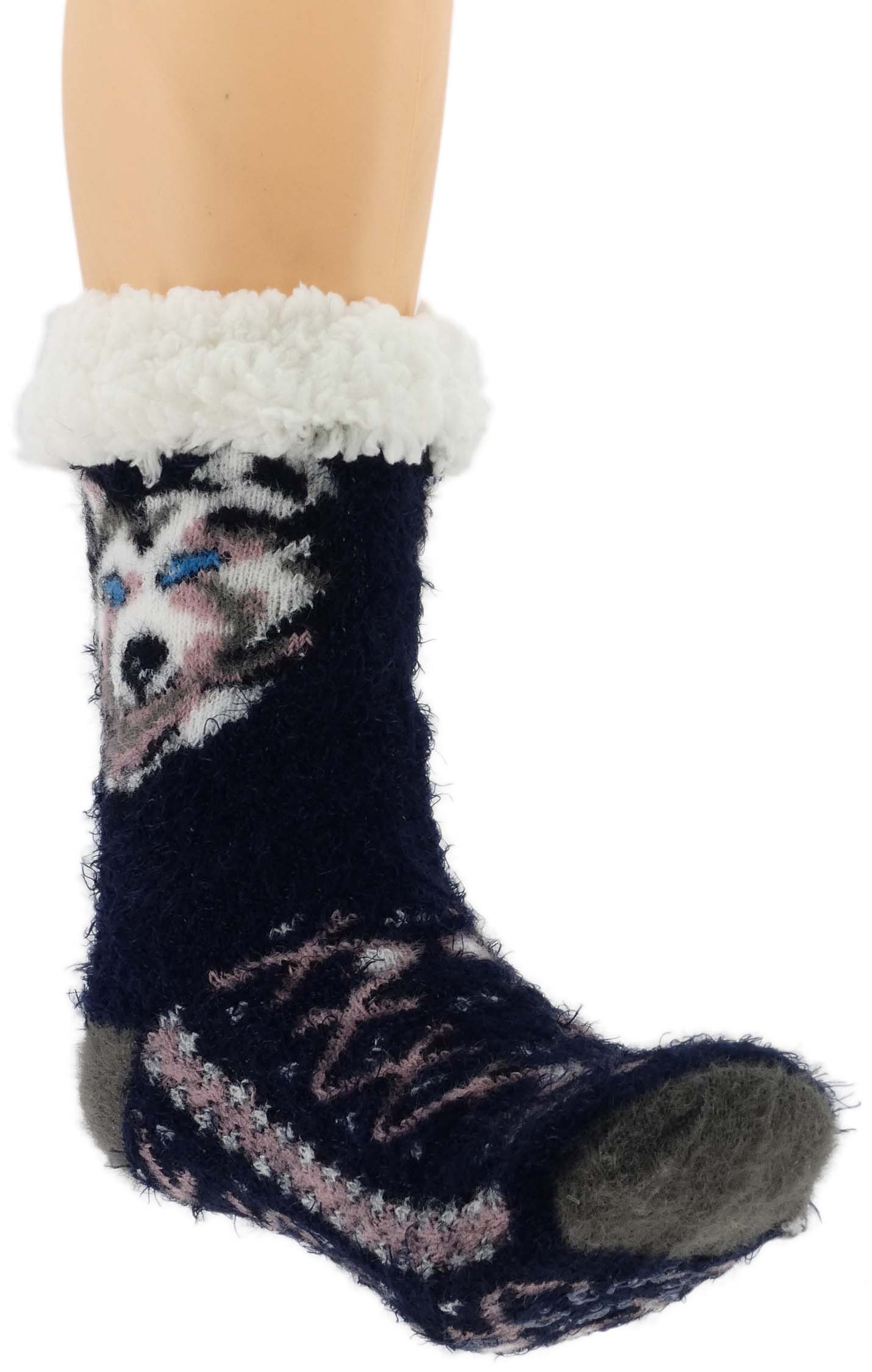 CIEPŁE MĘSKIE SKARPETY KAPCIE PIESKI ANTYPOŚLIZGOWE MIŚ GRANATOWE 41-46