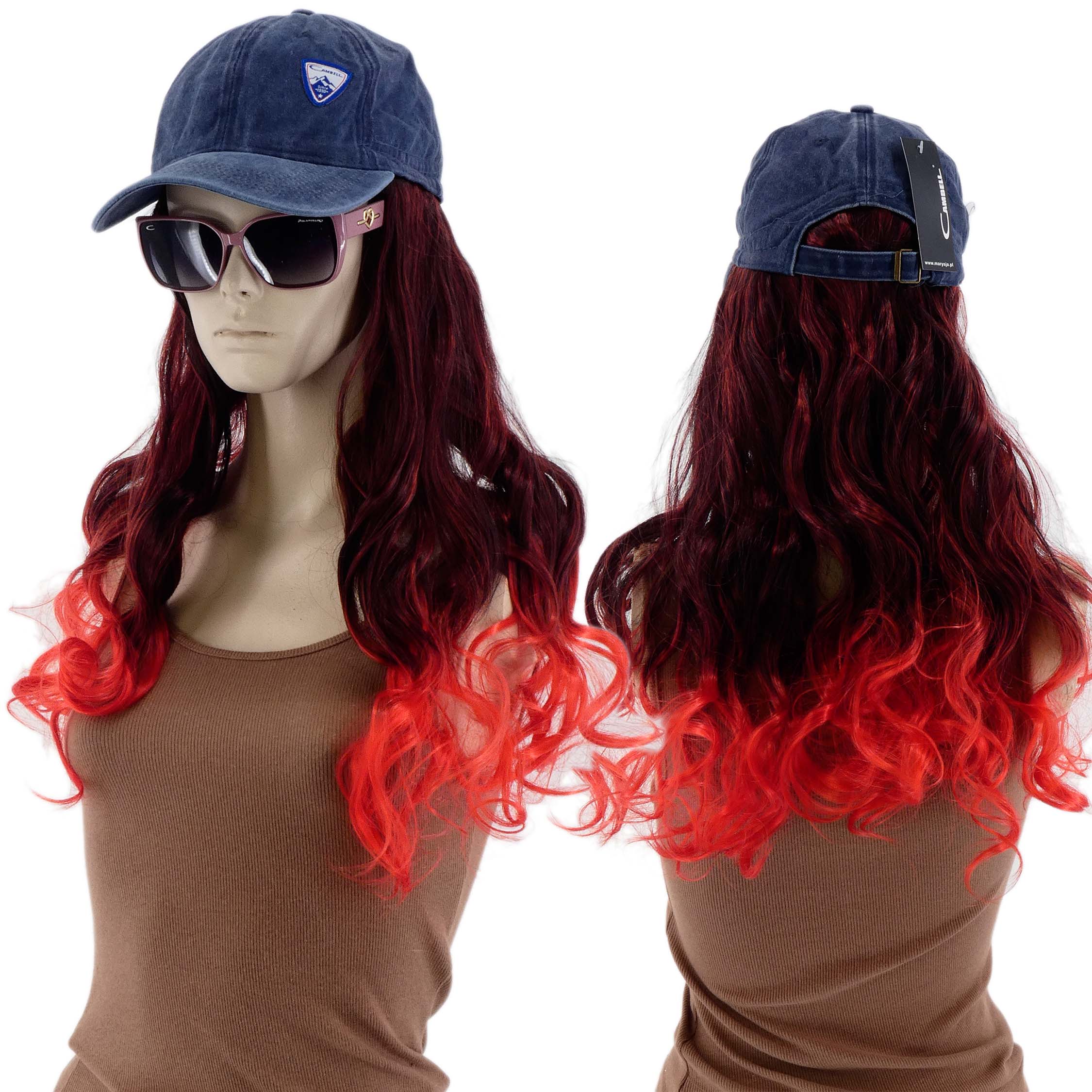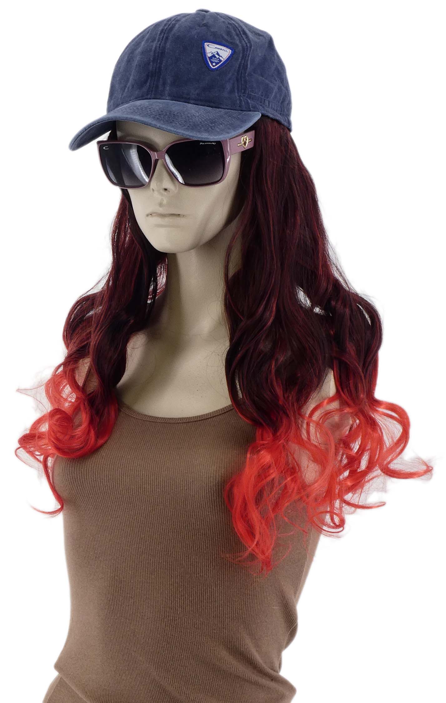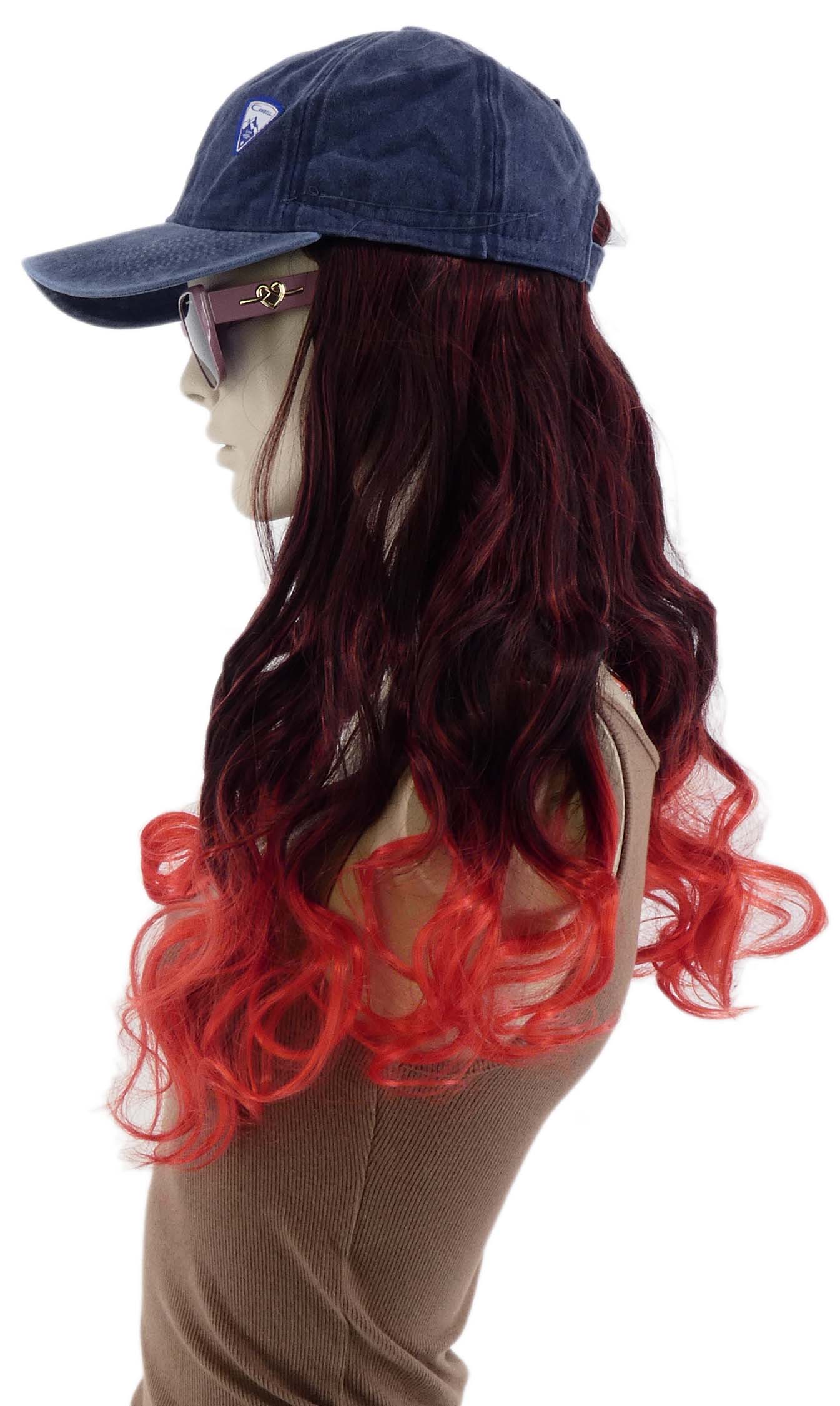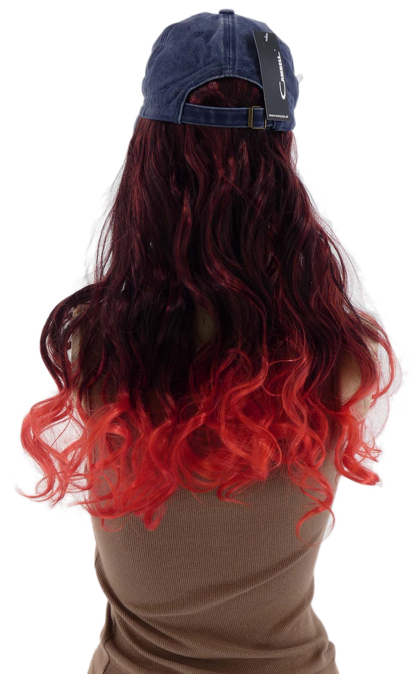 DAMSKA CZAPKA Z DASZKIEM PERUKĄ DŁUGIE KRĘCONE WŁOSY DŁUGOŚĆ 40CM CZERWONY
