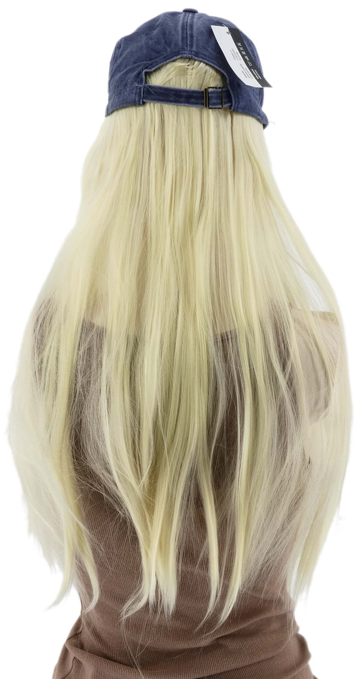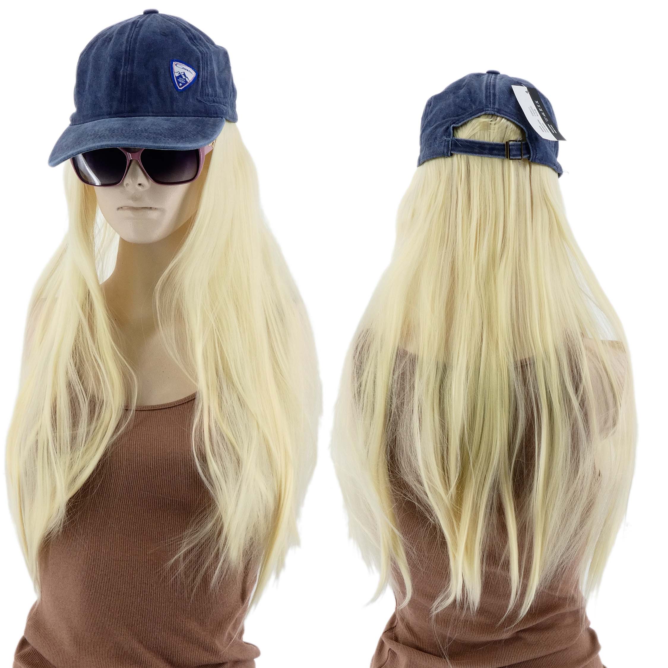 DAMSKA CZAPKA Z DASZKIEM PERUKĄ DŁUGIE PROSTE WŁOSY DŁUGOŚĆ 40CM BLOND