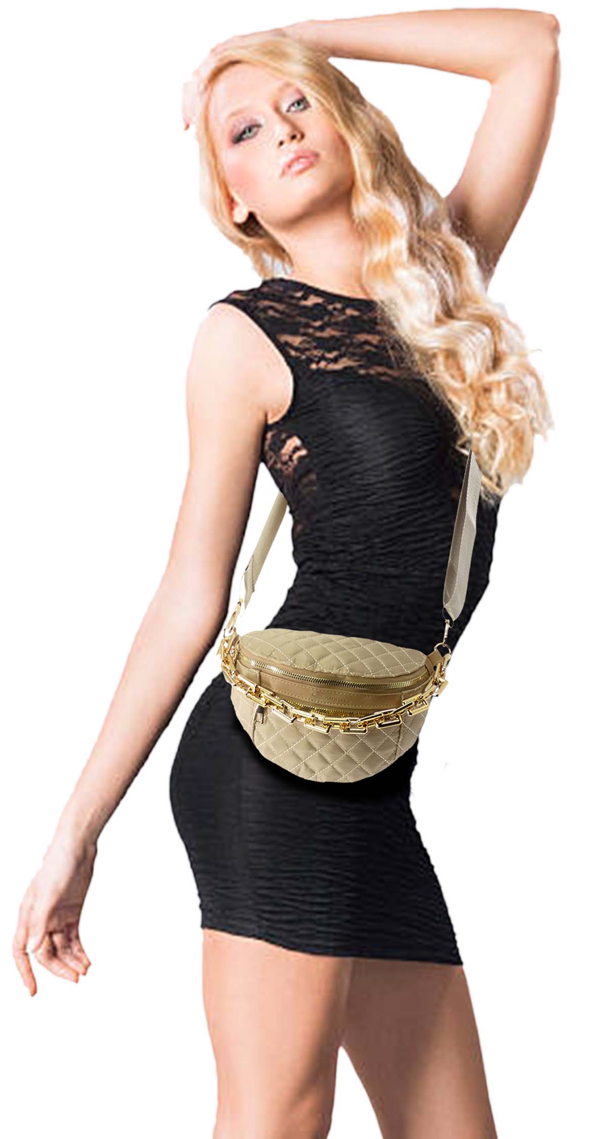 DAMSKA ELEGANCKA SASZETKA NERKA TOREBKA CROSSBODY BAG NA RAMIĘ BRĄZ ZŁOTO