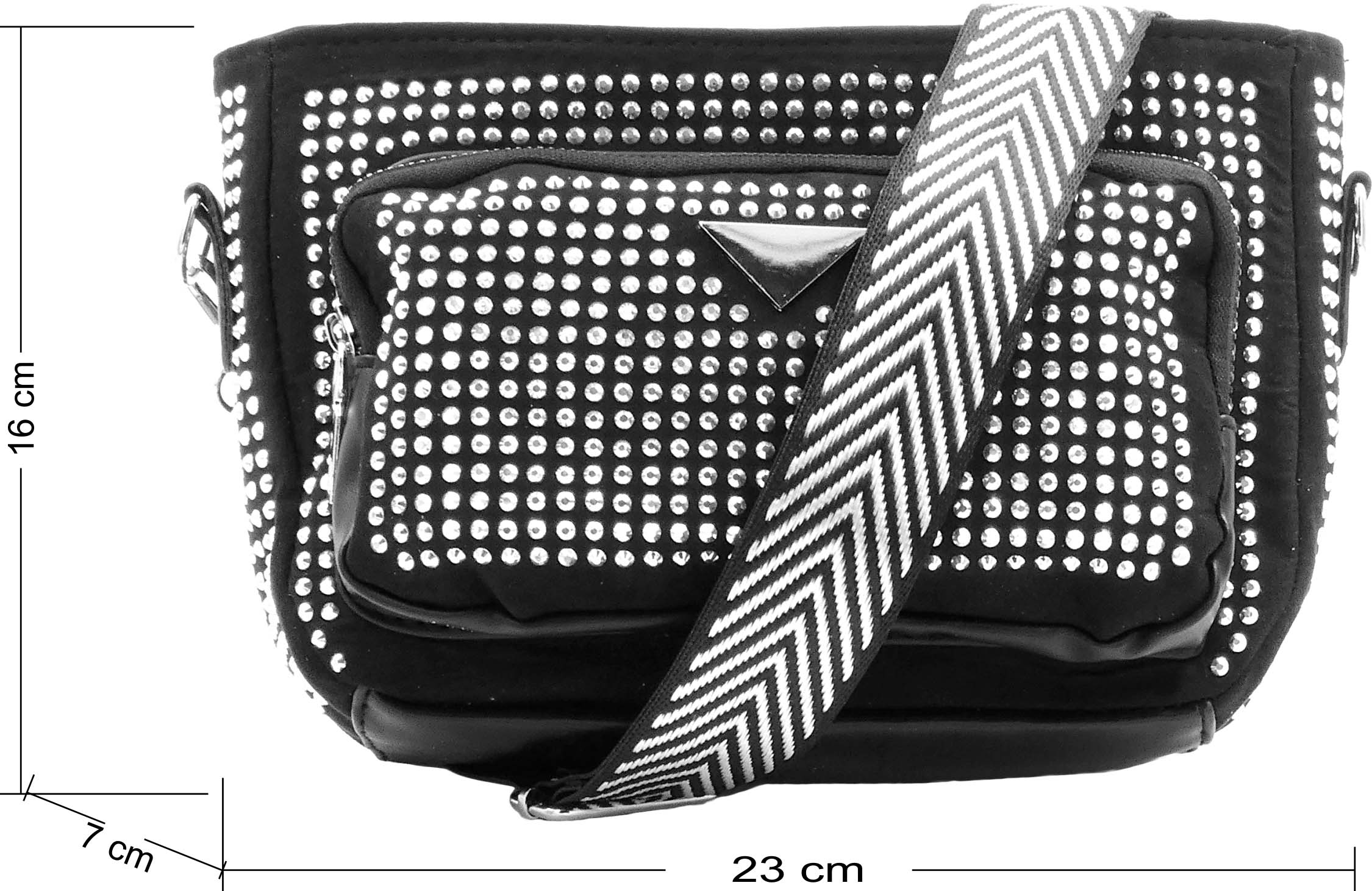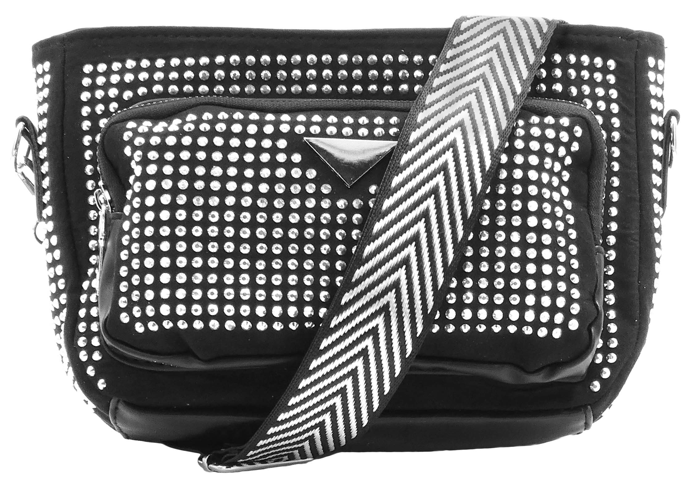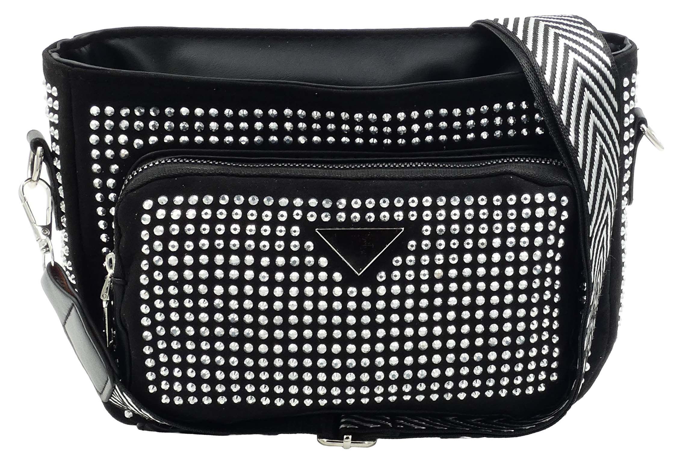 DAMSKA SASZETKA NERKA BAG NA RAMIĘ DWIE KOMORY CYRKONIE PASEK SREBRNA GLAMOUR