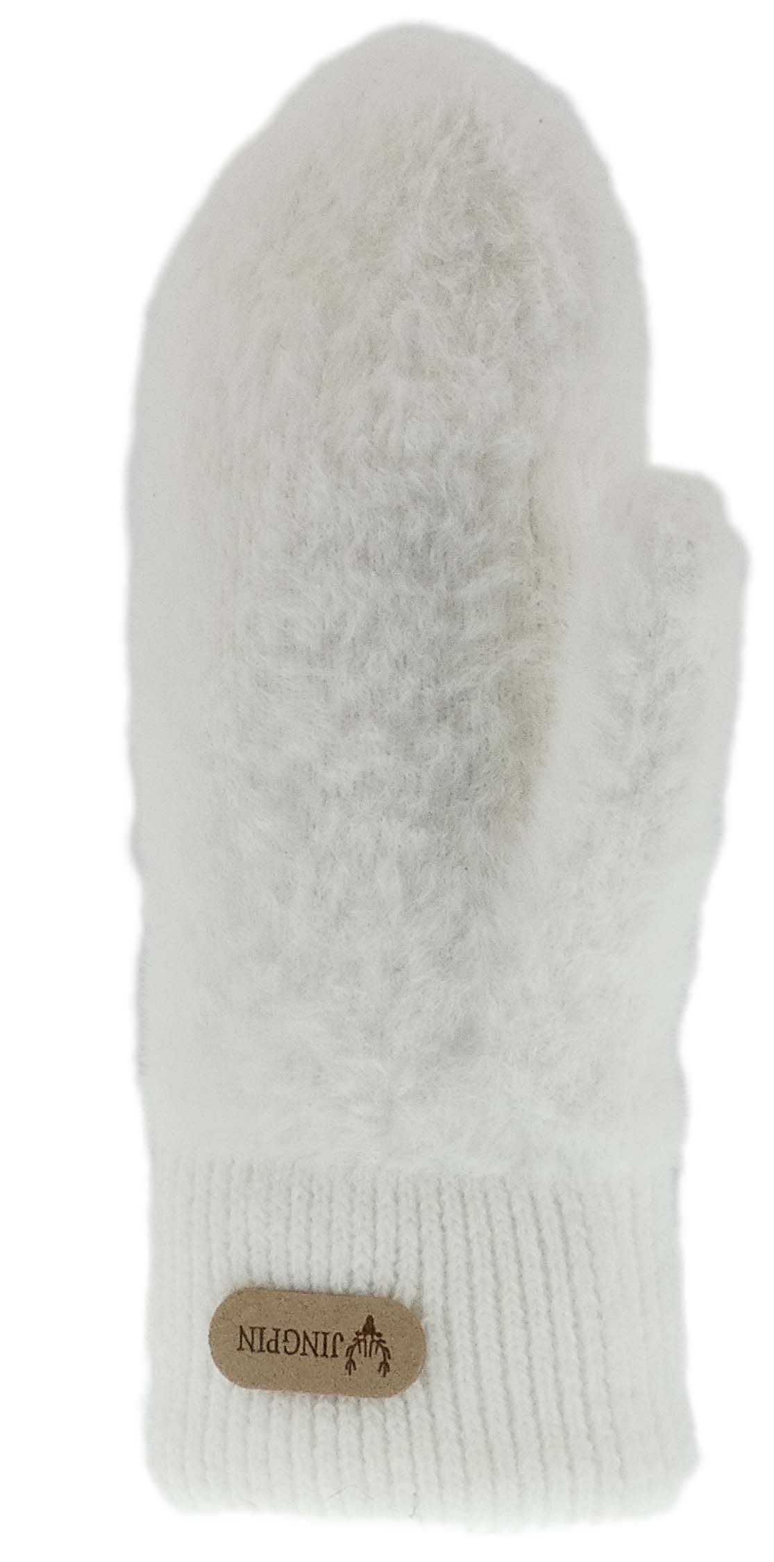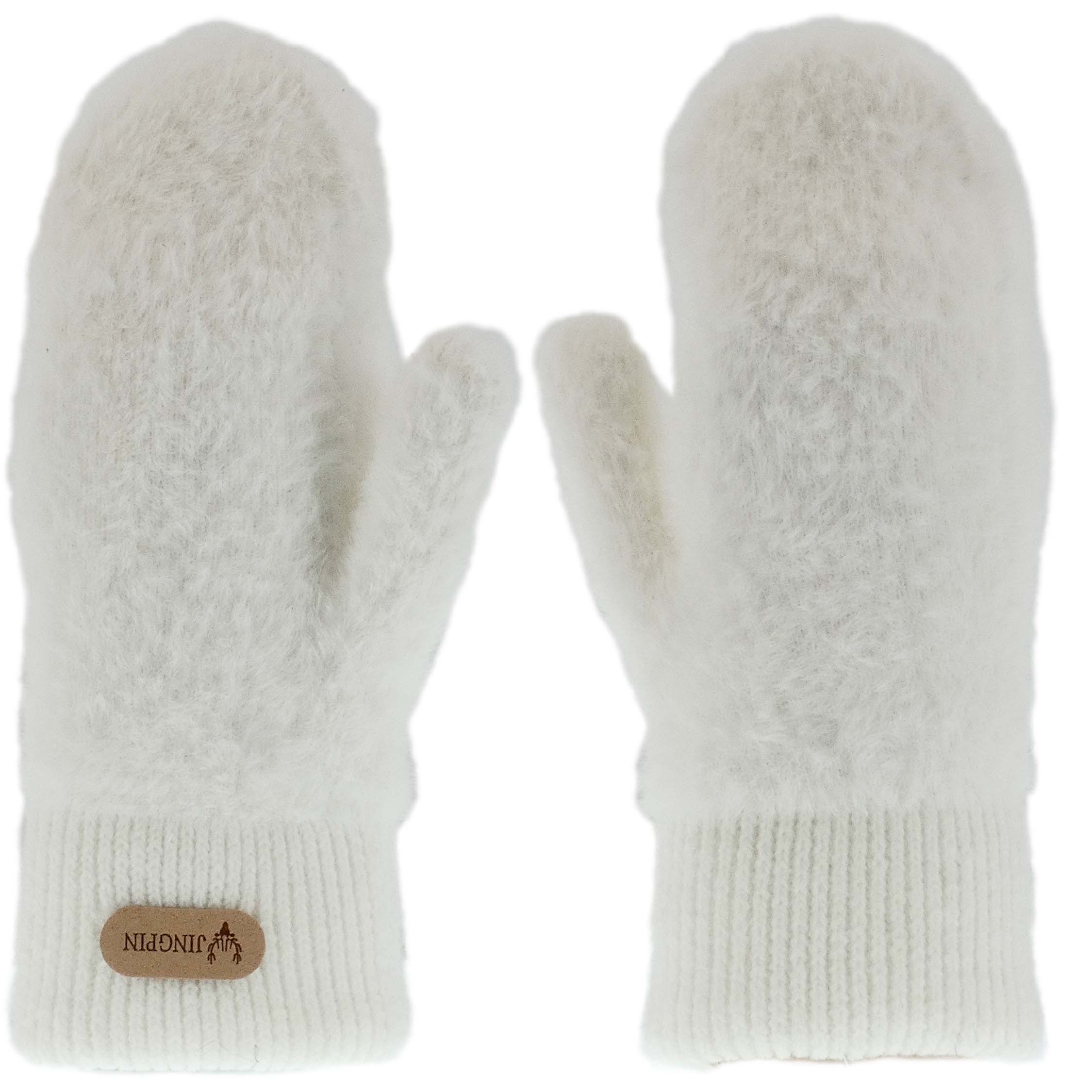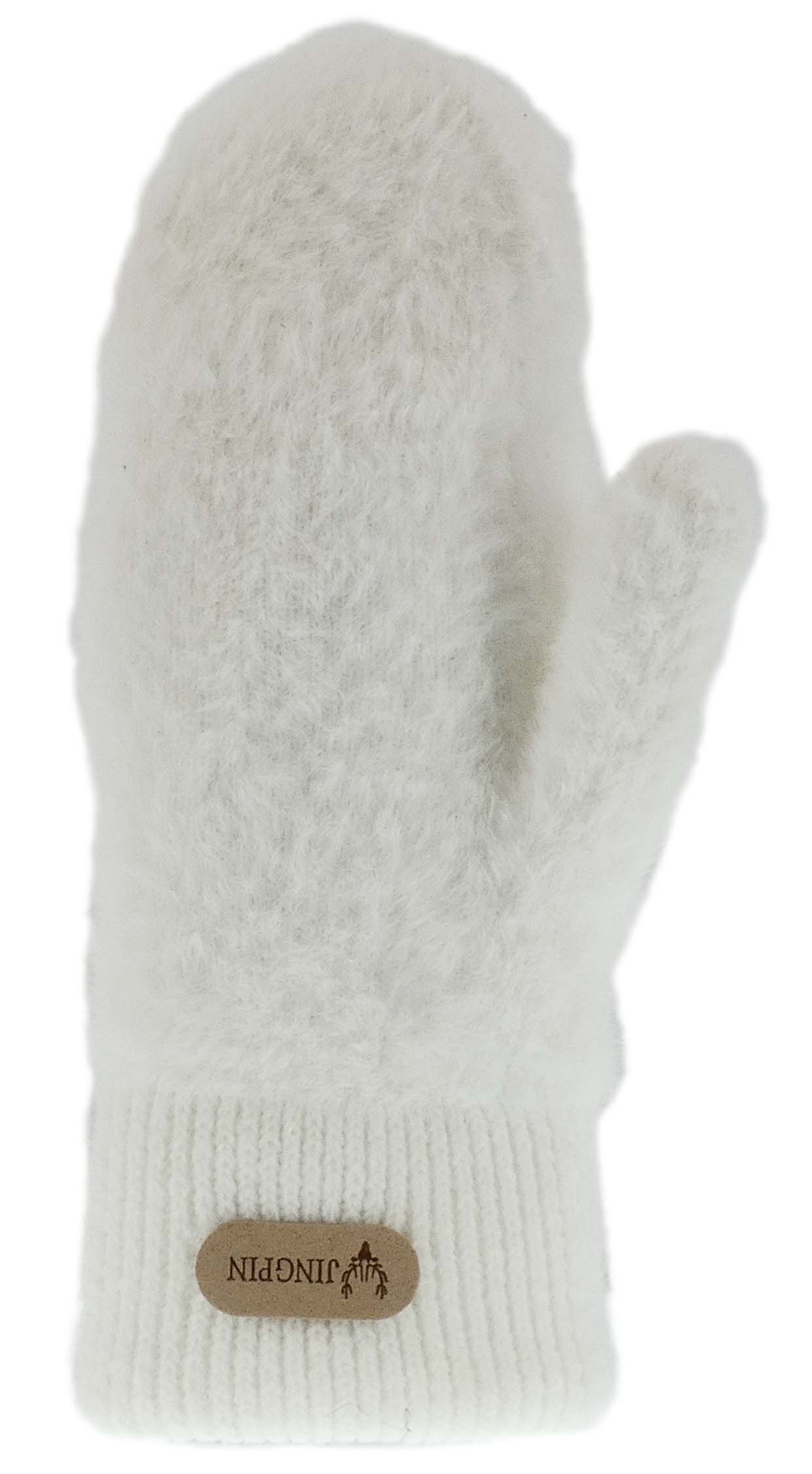 DAMSKIE JEDNOPALCZASTE ZIMOWE RĘKAWICZKI CIEPŁE ZE ŚCIAGACZEM BIAŁE