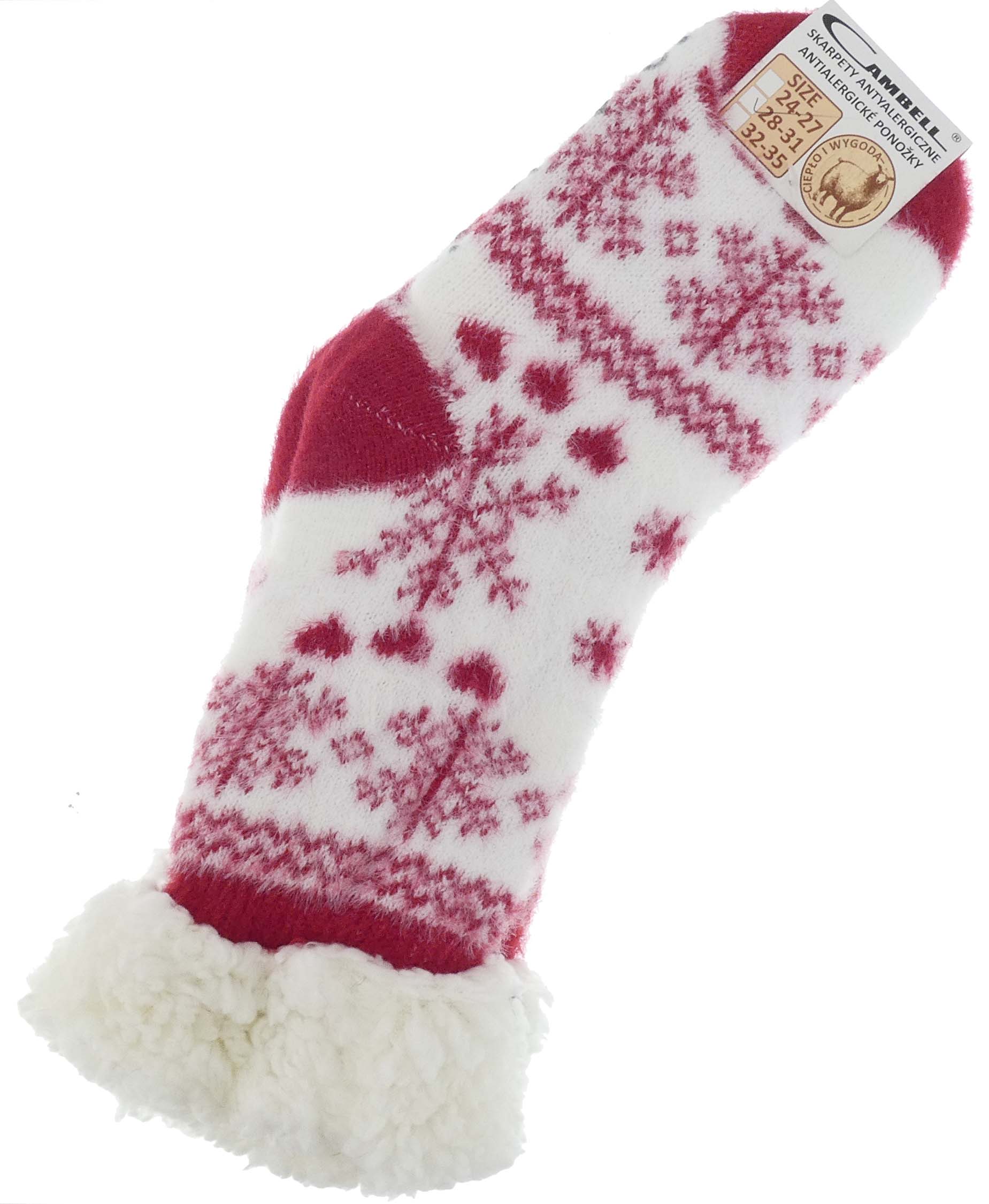 HIPOALERGICZNE DZIECIECE CIEPŁE SKARPETKI ZIMOWE KAPCIE ABS 28-31 CZERWONE