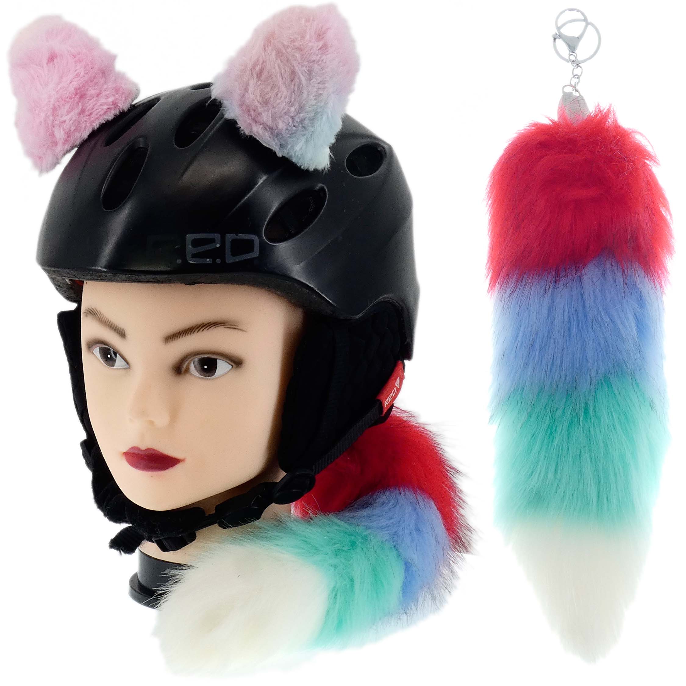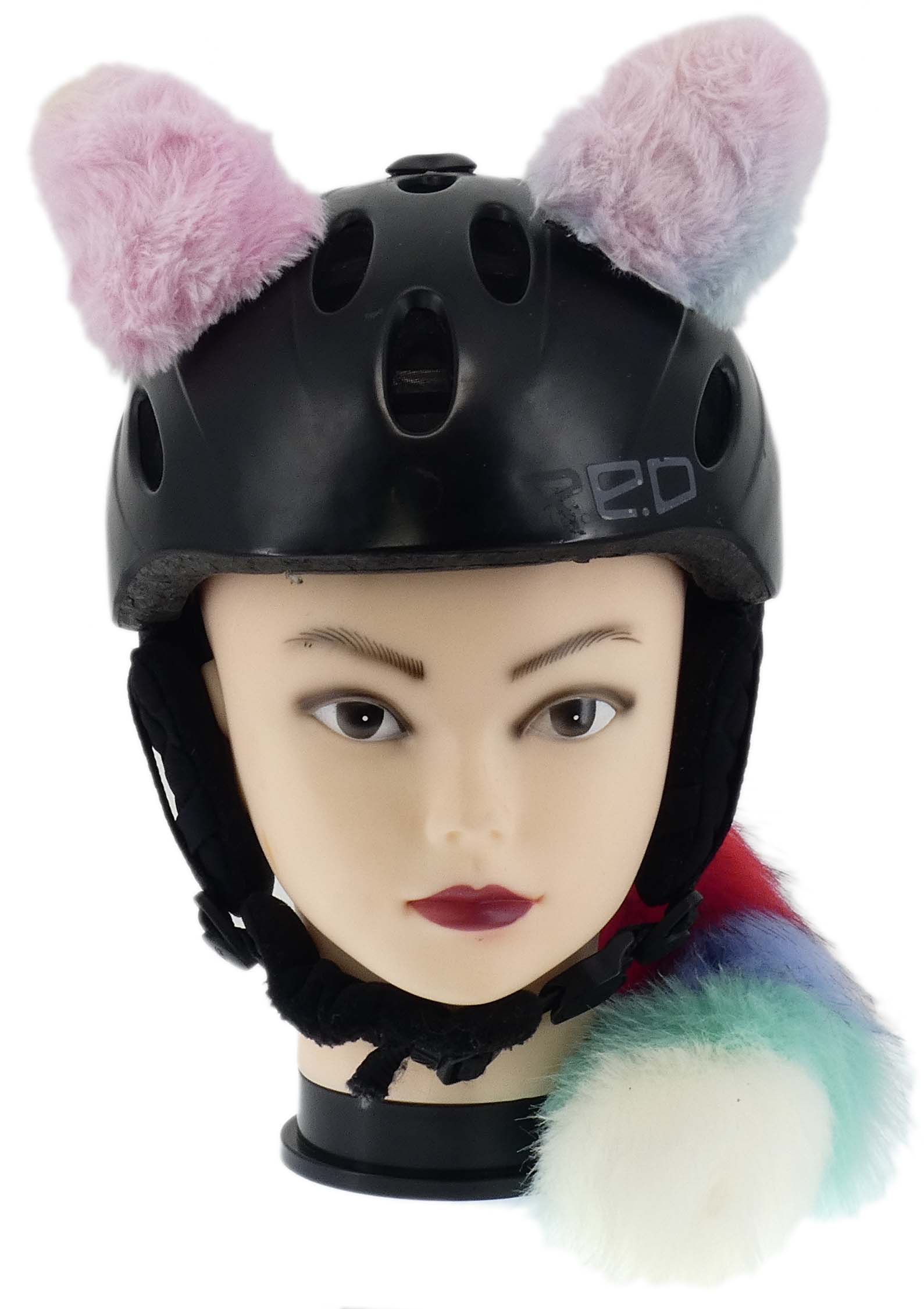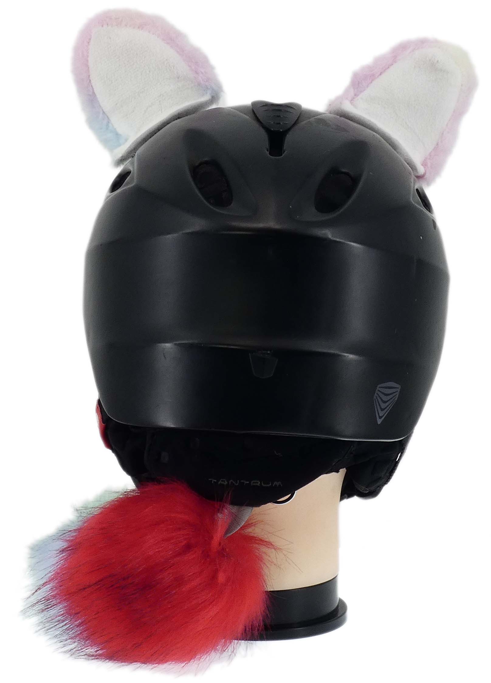 Komplet uszka plus świecąca kita, które można w łatwy sposób zamontować na kasku, na pewno odróżnią cię na drodze, lub stoku narciarskim. Uszka łatwo dają się przy montować w dowolnym miejscu na kasku za pomocą rzepa przyklejanego do kasku. Przypięcie jest bardzo solidne i gwarantujemy ci że nie odpadnie podczas zwykłego użytkowania. Natomiast gdy ci się znudzi, da się łatwo bez dodatkowych narzędzi odkleić. Kitę możesz przypiąć z tyłu do kasku. Kitka wewnątrz ma bateryjkę i diody LED które po włączeniu migają na różna kolory.