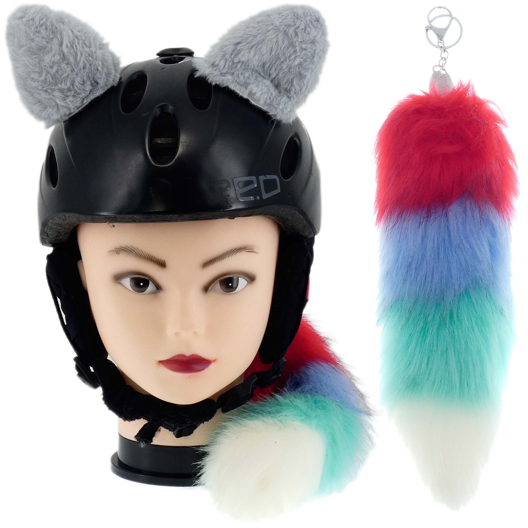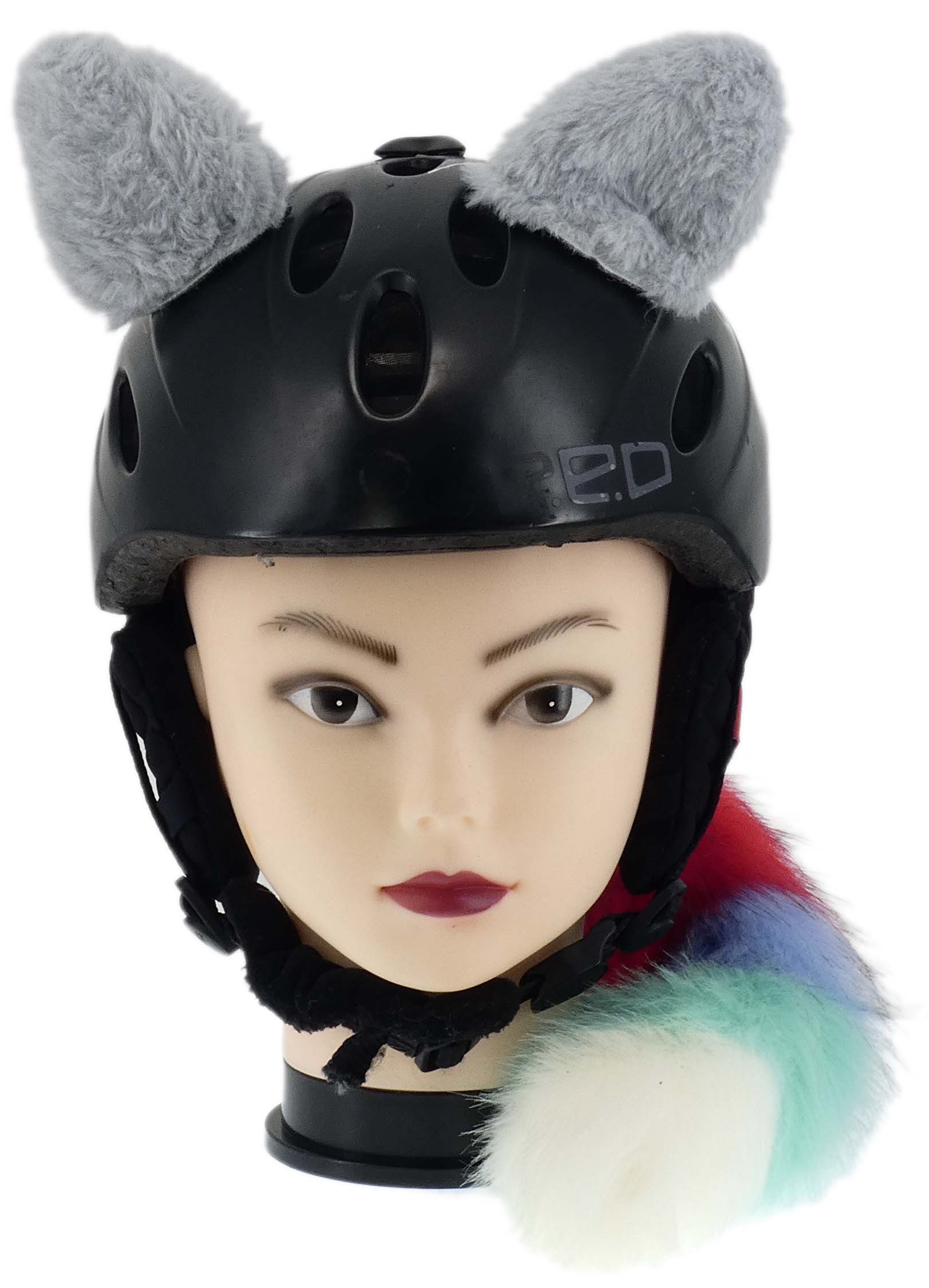 Komplet uszka plus świecąca kita, które można w łatwy sposób zamontować na kasku, na pewno odróżnią cię na drodze, lub stoku narciarskim. Uszka łatwo dają się przy montować w dowolnym miejscu na kasku za pomocą rzepa przyklejanego do kasku. Przypięcie jest bardzo solidne i gwarantujemy ci że nie odpadnie podczas zwykłego użytkowania. Natomiast gdy ci się znudzi, da się łatwo bez dodatkowych narzędzi odkleić. Kitę możesz przypiąć z tyłu do kasku. Kitka wewnątrz ma bateryjkę i diody LED które po włączeniu migają na różna kolory.