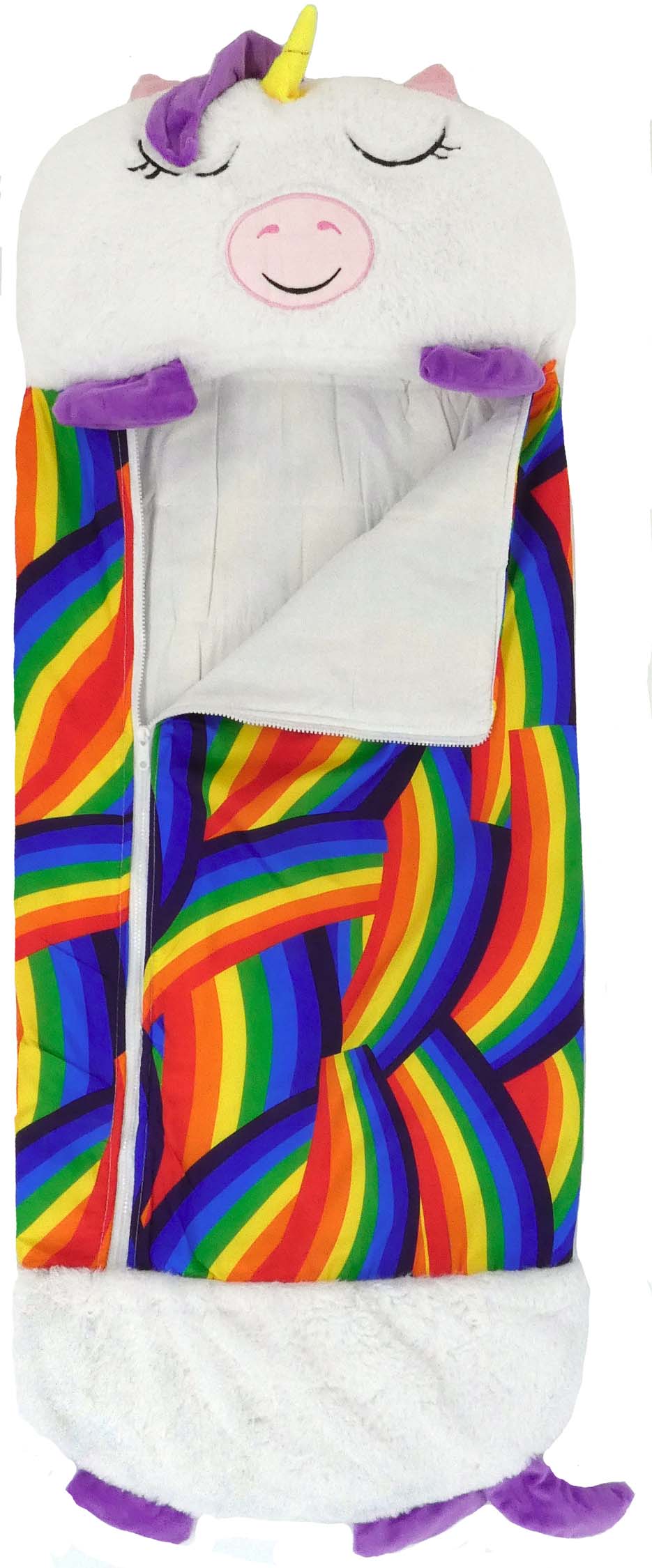 Twoje dziecko będzie zachwycone tym śpiworem. Na co dzień może być złożony i pełnić role poduszki z śmieszną sympatyczną buźką. A gdy zajdzie taka potrzeba można go rozłożyć i mamy wygodny i miły w dotyku śpiwór.