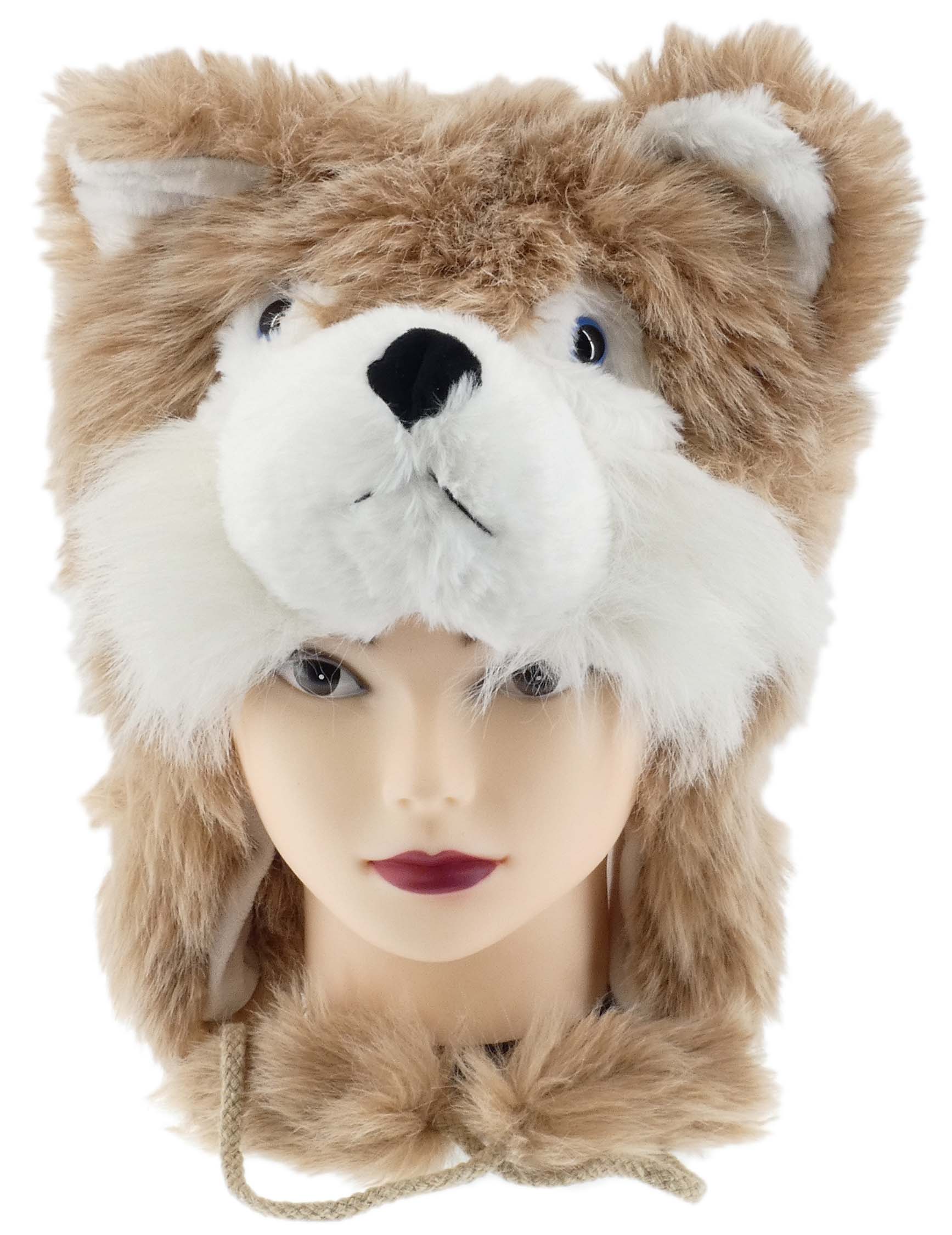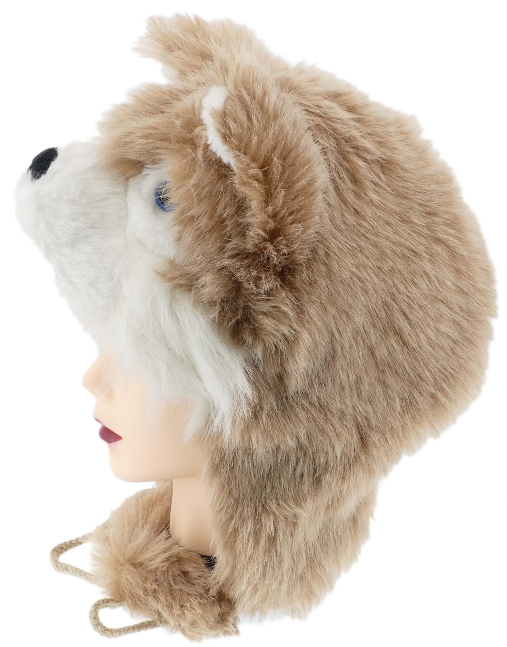 ZABAWNA CIEPŁA ZIMOWA CZAPKA KOBIECA Z FUTERKIEM MORDKA LISEK POMPONY