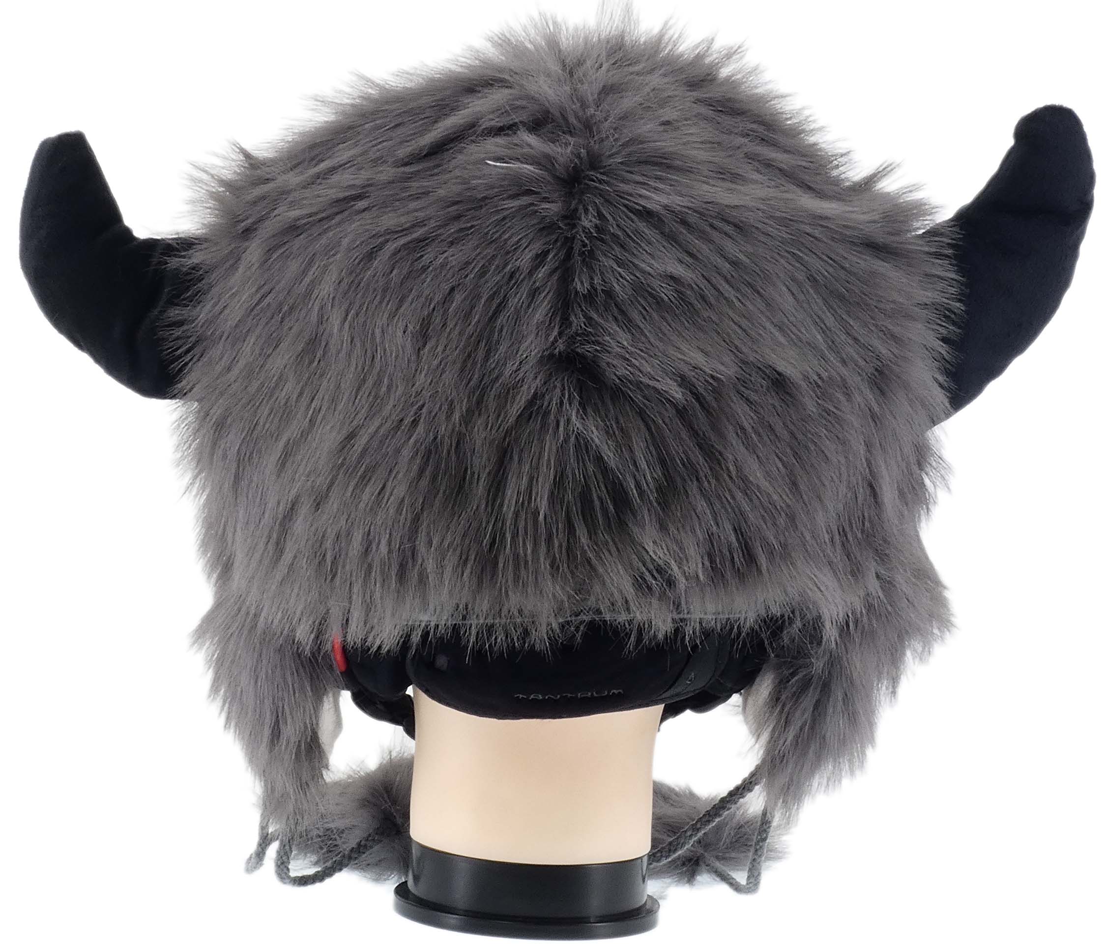 Zabawna czapa zakładana na kask, imitująca rogatego potwora w ciekawej kolorystyce z oczami i miękkimi rogami. Dwa pompony wiszące dopełniają całość. Czapa jest wykonana z sztucznego futra, posiada specjalne gumki po obu stronach, do zaczepienia do kasku aby podczas szybkiej jazdy nie spadała.