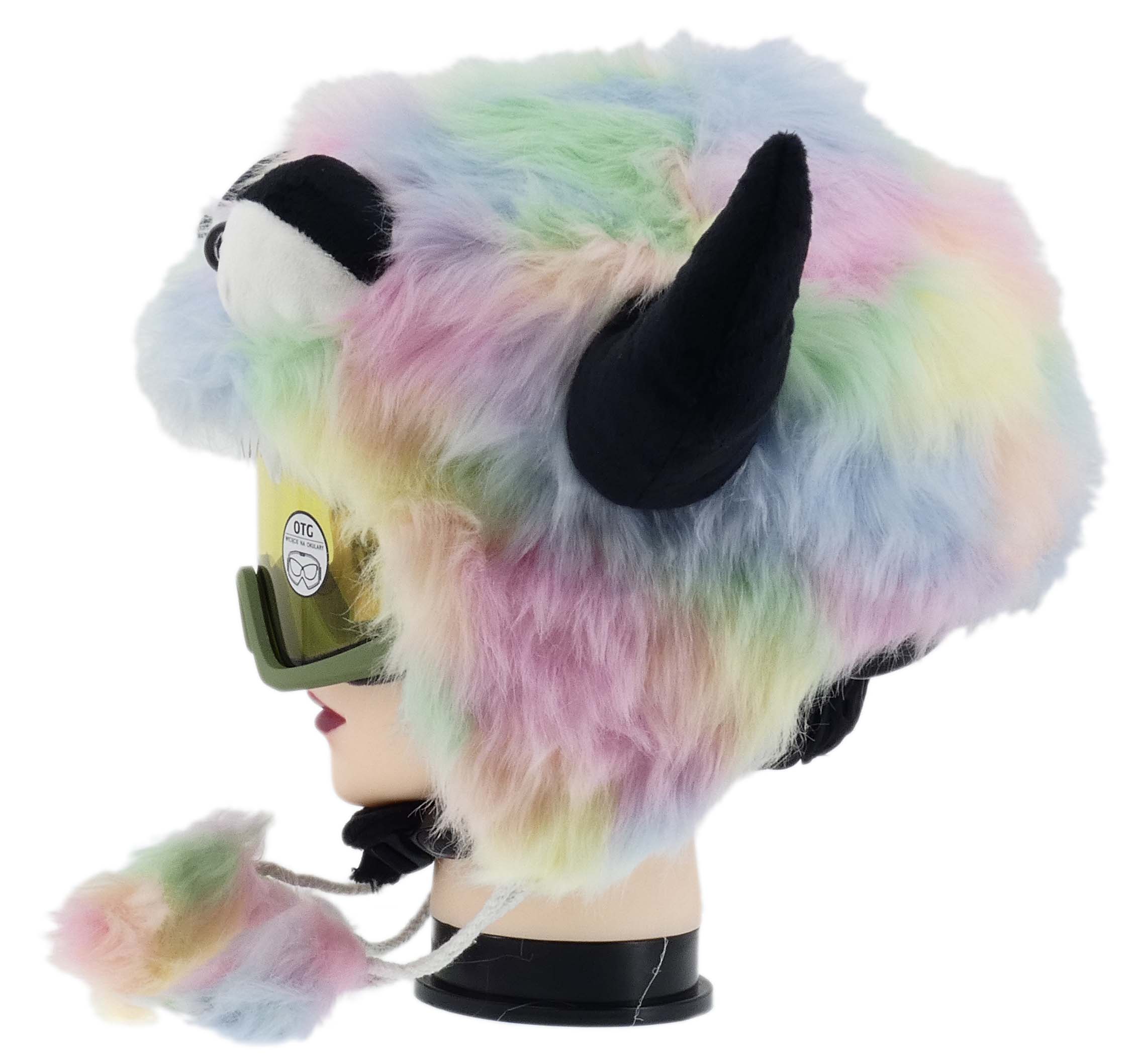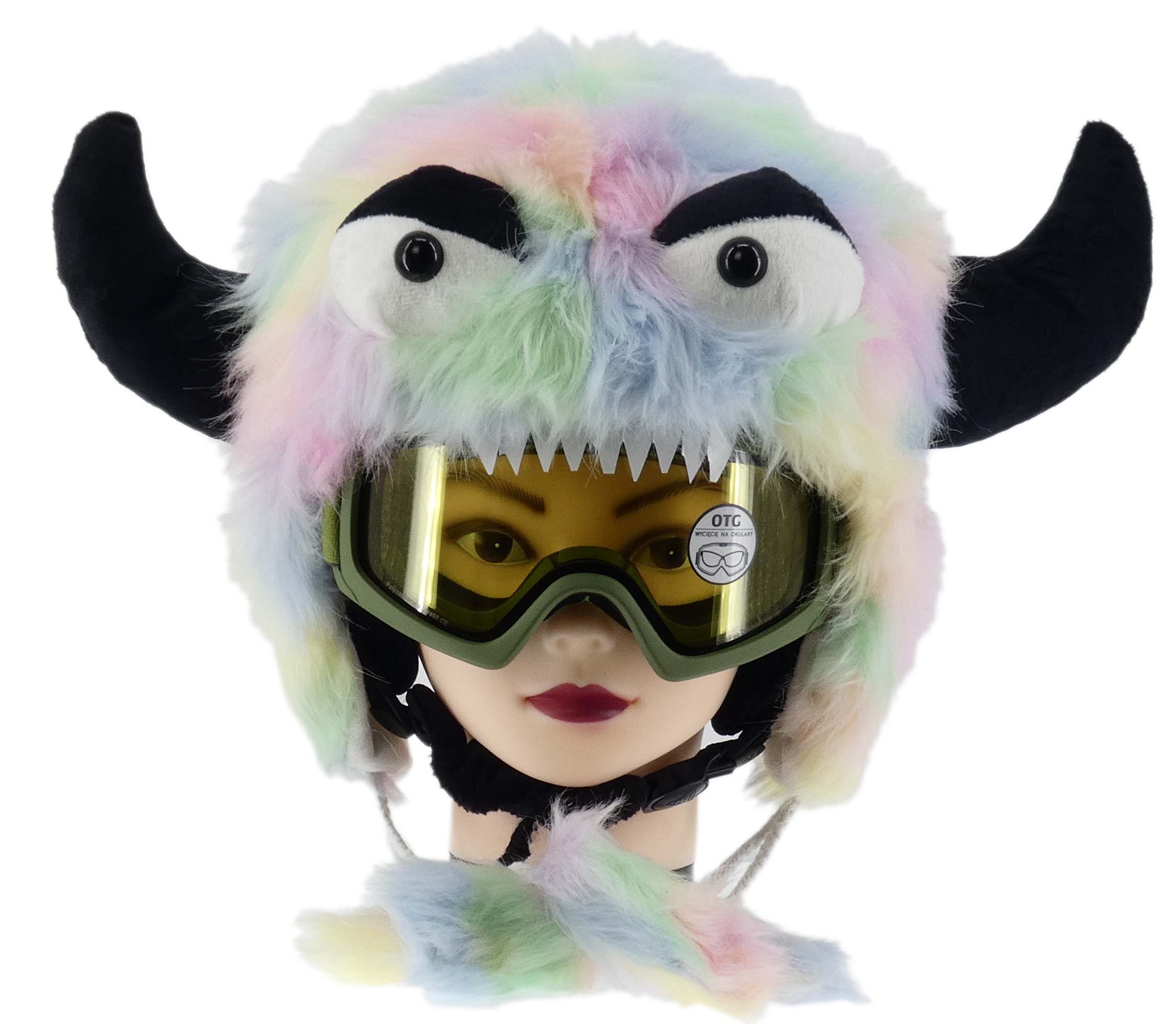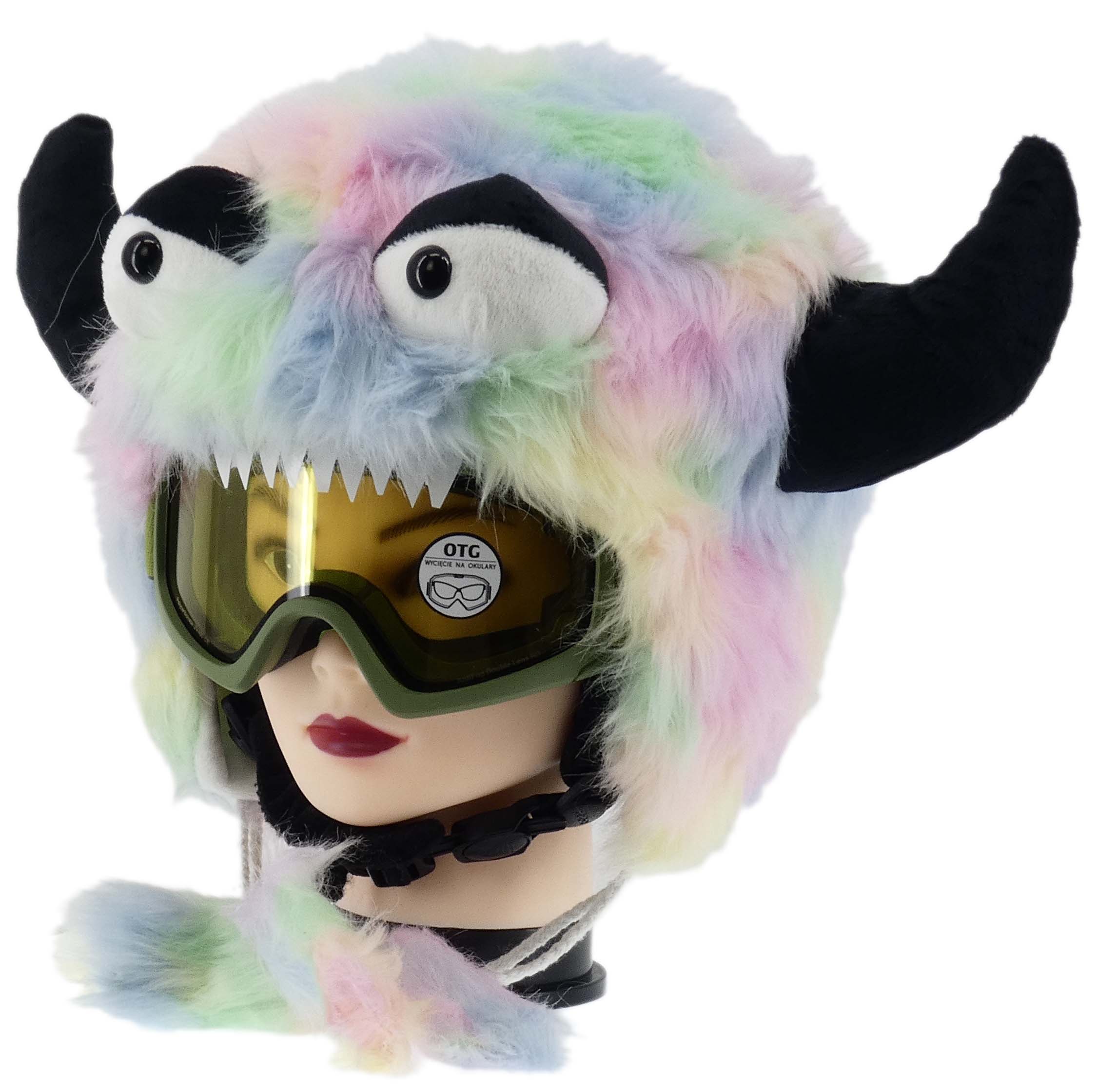 Zabawna czapa zakładana na kask, imitująca rogatego potwora w ciekawej kolorystyce z oczami i miękkimi rogami. Dwa pompony wiszące dopełniają całość. Czapa jest wykonana z sztucznego futra, posiada specjalne gumki po obu stronach, do zaczepienia do kasku aby podczas szybkiej jazdy nie spadała.