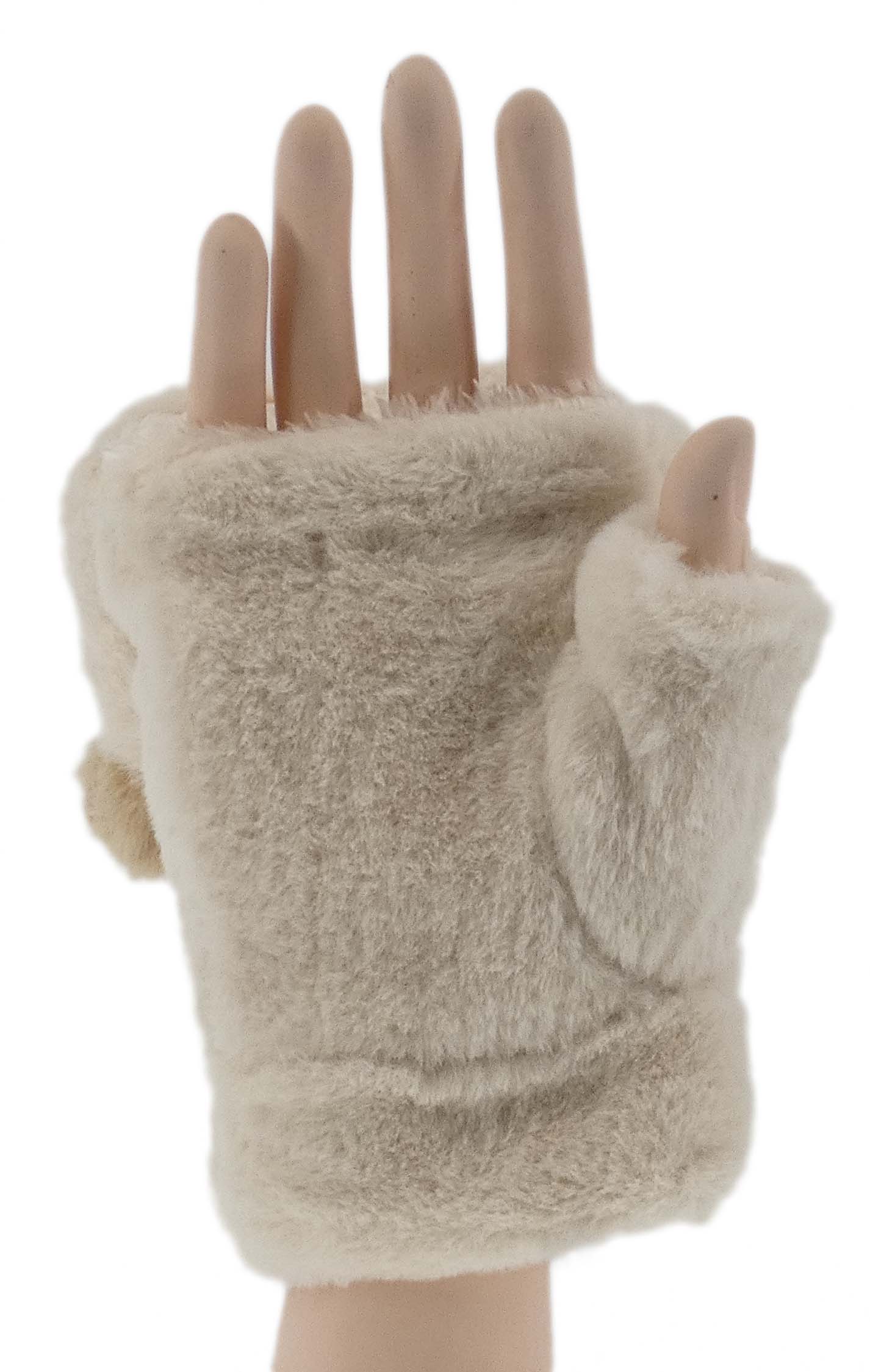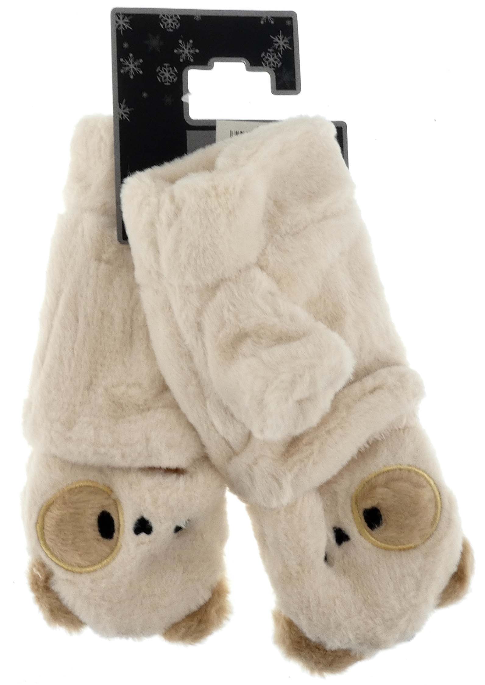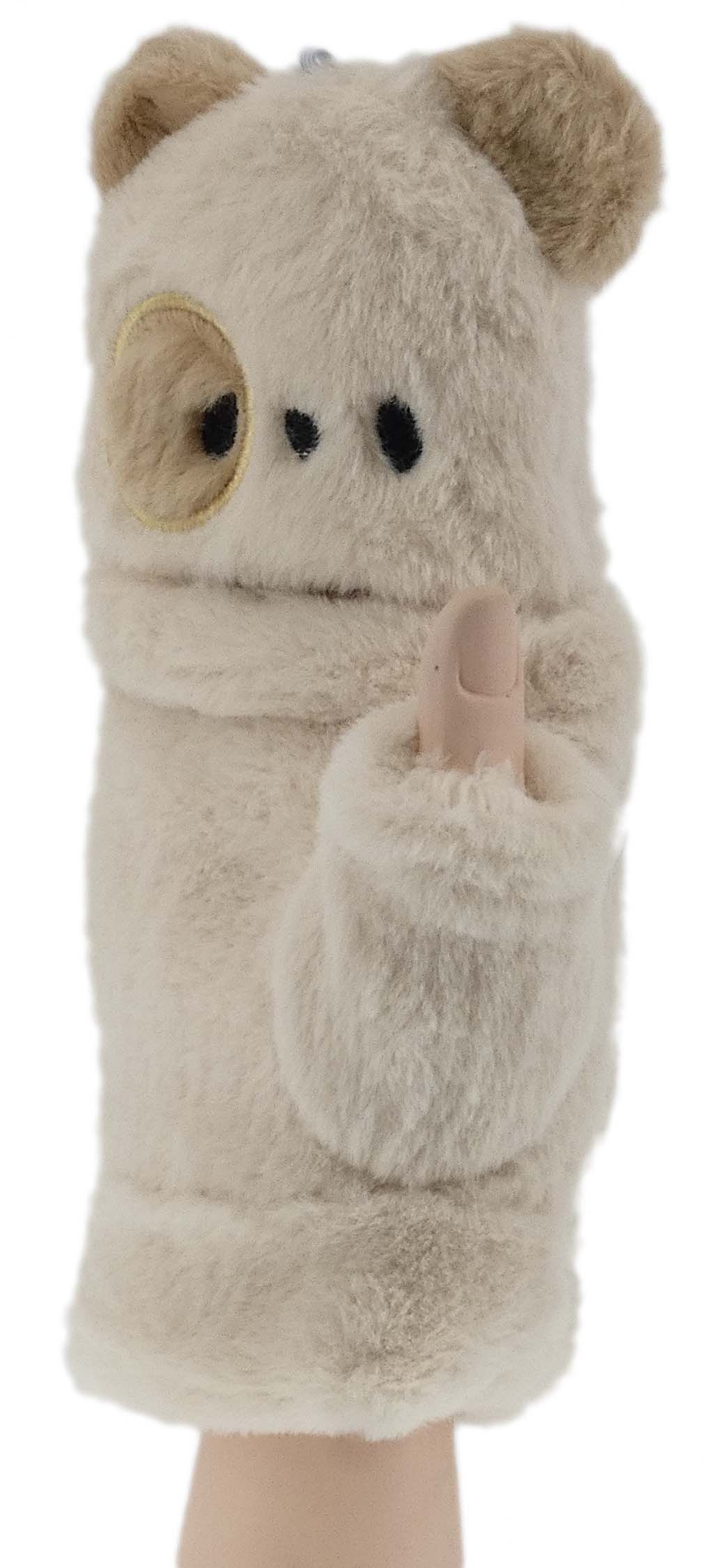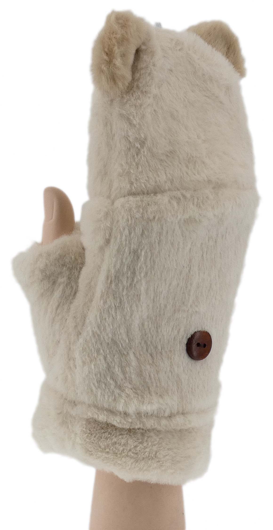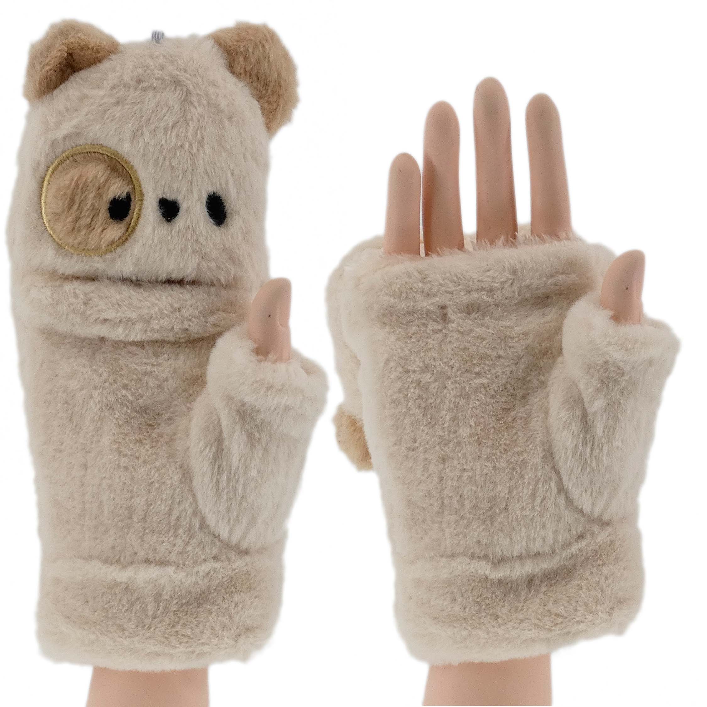 ZIMOWE RĘKAWICZKI ZABAWNE MORDKI MIŚ Z ODKRYTYM KCIUKIEM MITENKI BEŻOWE